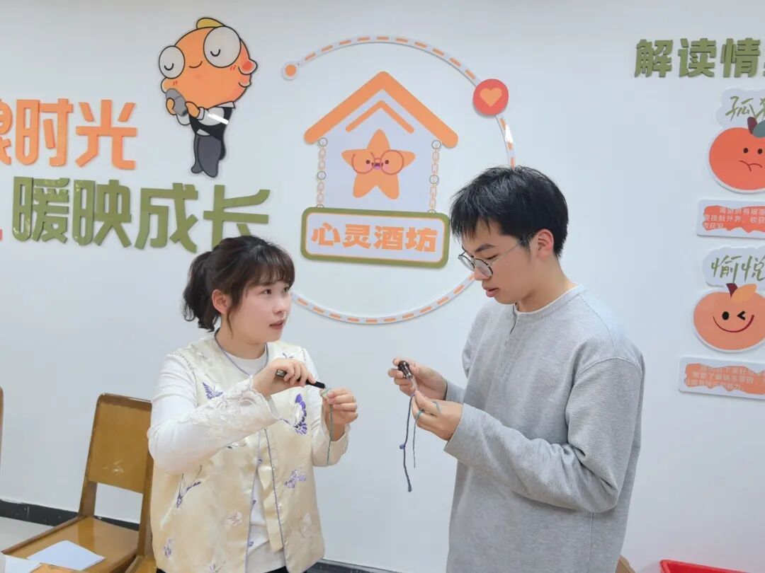 本学期,学院将定期开放二级辅导站“心灵酒坊”,鼓励学生自主预约前来进行手工制作,进一步扩大手工疗愈的辐射范围。学院将持续通过沉浸式体验,引导学生培育理性平和、积极向上的健康心态。