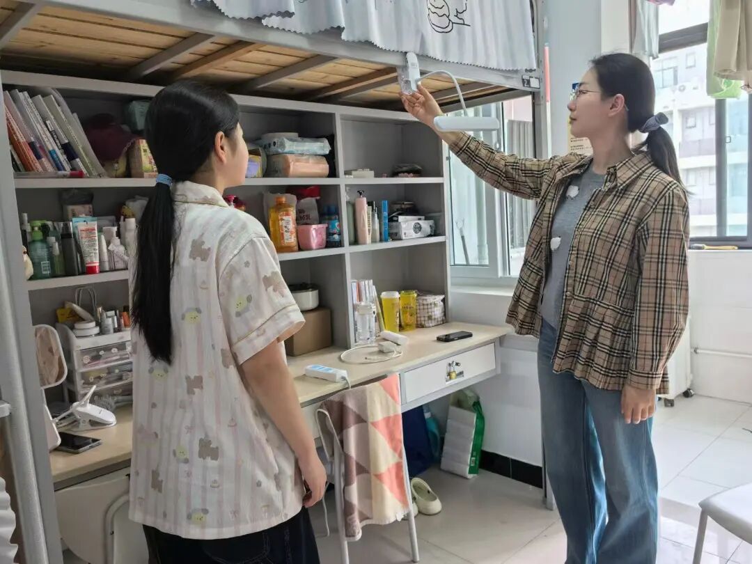 走访过程中,辅导员走进学生宿舍,与同学们亲切交流,细致查看宿舍卫生环境,排查违禁品,检查私拉乱接电线、使用大功率电器等安全隐患,现场督促同学们及时整改问题,引导大家自觉遵守宿舍管理规定。