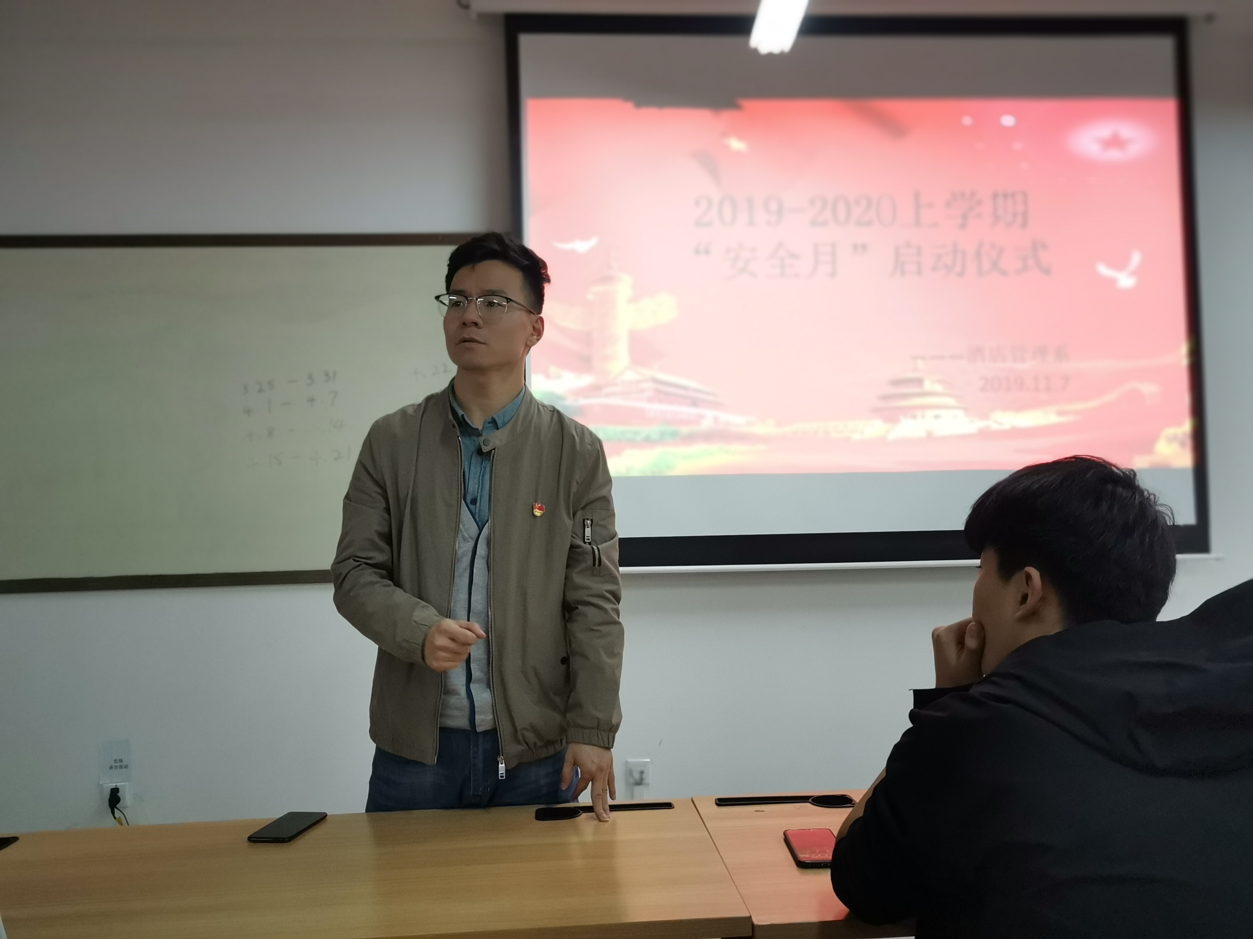 为深入贯彻落实党的十九大精神,进一步深化高校大学生安全教育,持续提升学院安全教育水平和学生安全素养,酒店管理学院于2019年11月7日在2B302教室召开2019—2020学年上学期“安全月”启动仪式,陈海彬书记、牛亚飞老师出席本次启动仪式,学生会主席团、各部部长及18级、19级各班安全委员参加。