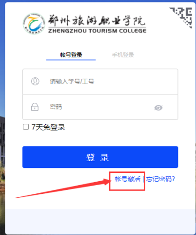 2)登陆首页【登陆】按钮下方点击【账号激活】