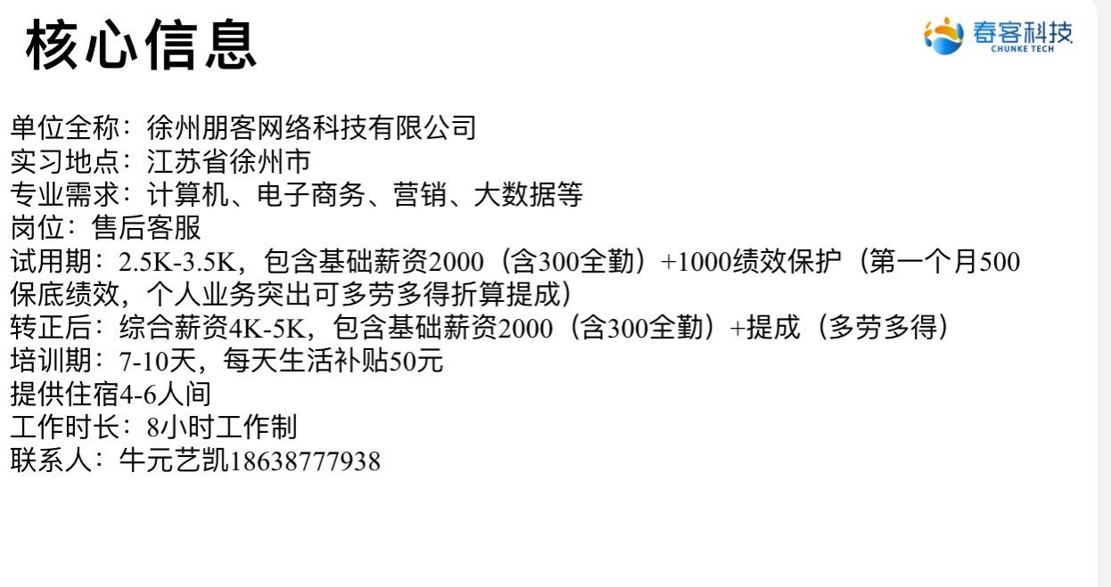 实习招聘(二十二)徐州朋客网络科技有限公司实习介绍