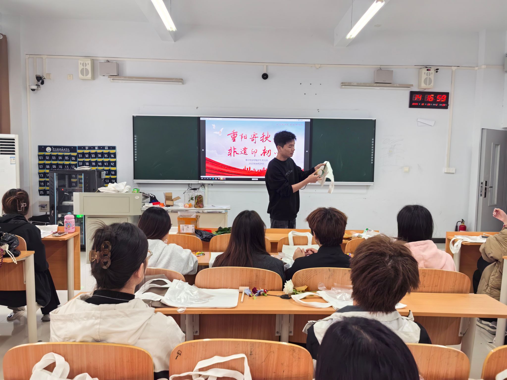 岁岁重阳,今又重阳。为传承中华优秀传统文化,深化入党积极分子对传统节日内涵的理解,10月29日下午,数字经济学院学生党支部在1B203教室开展以“重阳寄秋韵,非遗印初心”为主题的植物拓染体验活动。18名入党积极分子积极参与,在指尖创作中感受非遗魅力,在秋日氛围里传递文化温情。