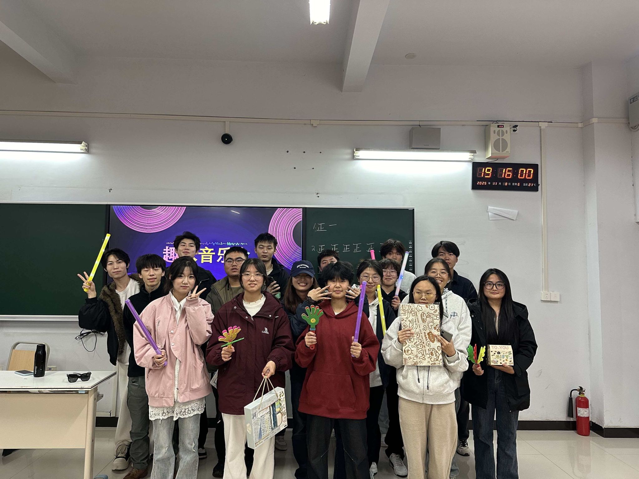 活动尾声,主持人根据积分公布获奖组并颁发奖品,为参与同学颁发参与奖,在欢乐中为这场音乐盛宴收尾。现场始终洋溢着轻松热烈的氛围,每一轮比拼都充满激情与趣味,充分展现了同学们的青春风采与团队默契。