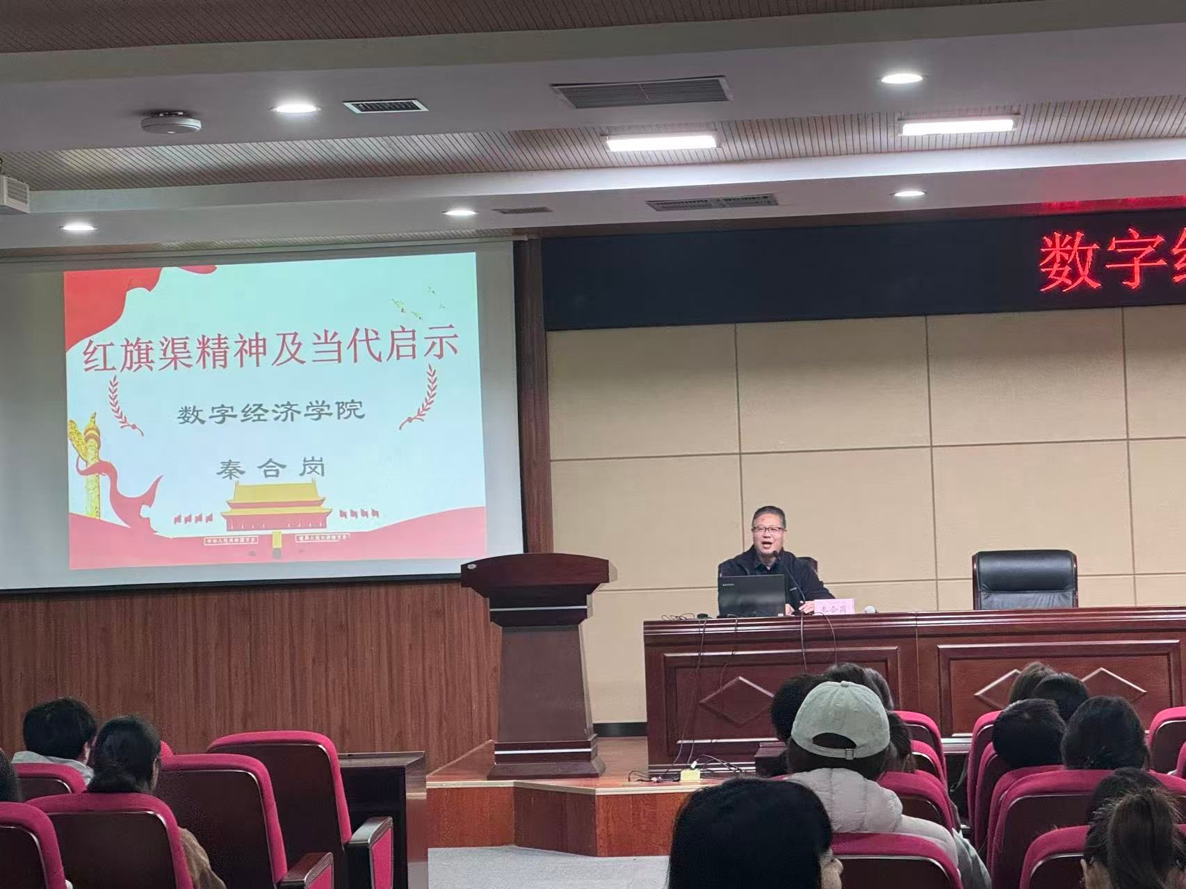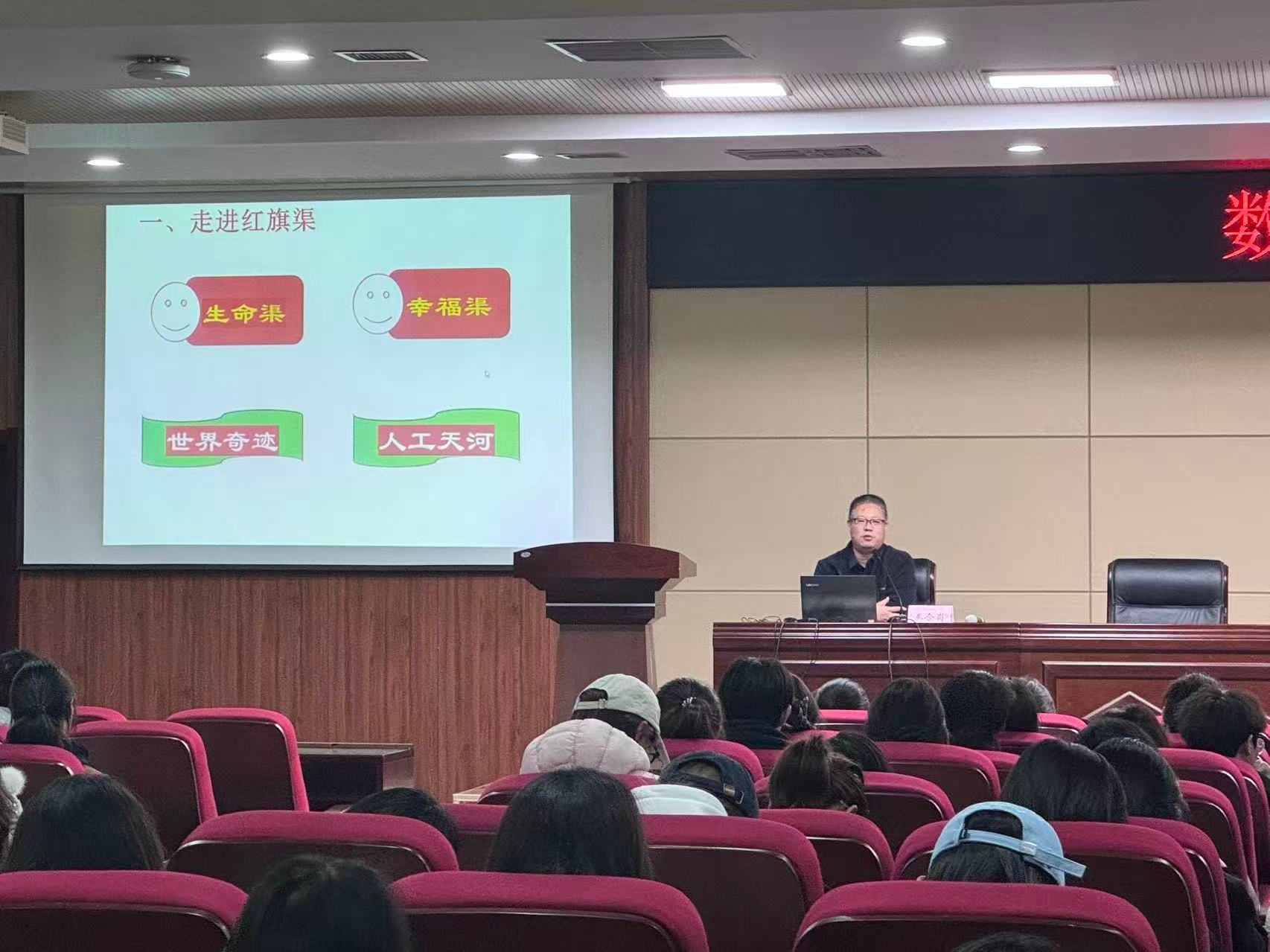 为厚植学子红色情怀,数字经济学院院长秦合岗以“红旗渠精神及当代启示”为题开展专题讲座,带领学生重温红旗渠奋斗故事,探讨精神传承的时代意义。