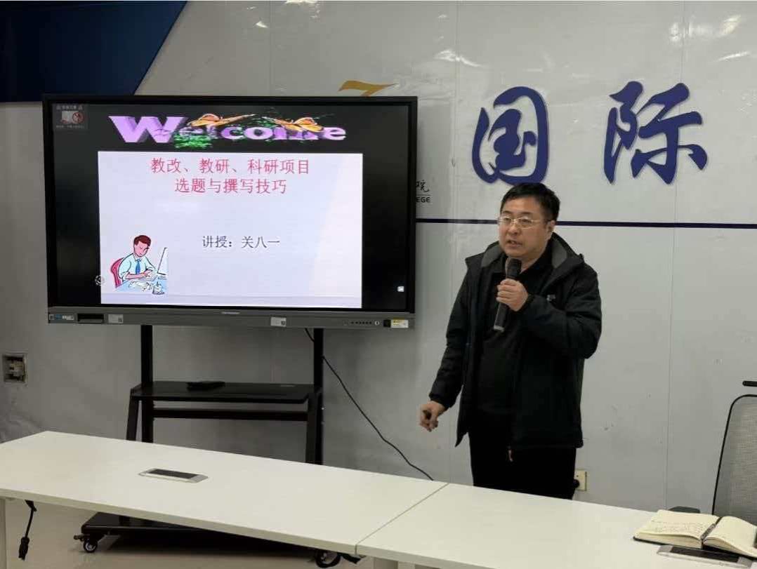 为提升学院教师的教改、教研与科研项目申报能力,助力教师在项目选题与撰写上突破瓶颈,1月16日,数字经济学院于 1B304 会议室举办专题培训,学院副院长、教授关八一担任主讲人,全体教职工参与此次学习。
