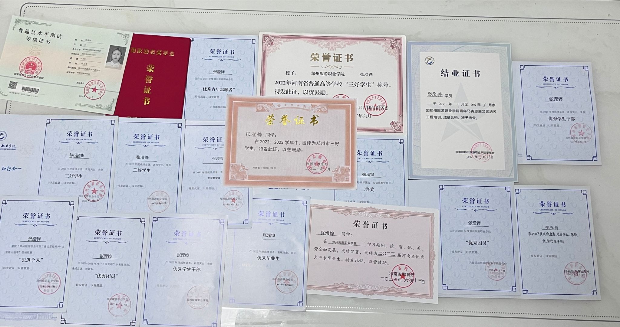 张滢铧,女,汉族,中共预备党员,毕业于郑州旅游职业学院国际工商学院20级会计六班,在校期间曾担任国际工商学院学习部部长,院资助协理员,20级会计六班团支书,暑假期间曾任学生处学生助理。大学期间曾获国家励志奖学金、2021-2022年度河南省三好学生、郑州市三好学生、河南省优秀毕业生等荣誉。现就读于信阳学院,成为23级新生继续完成学业。