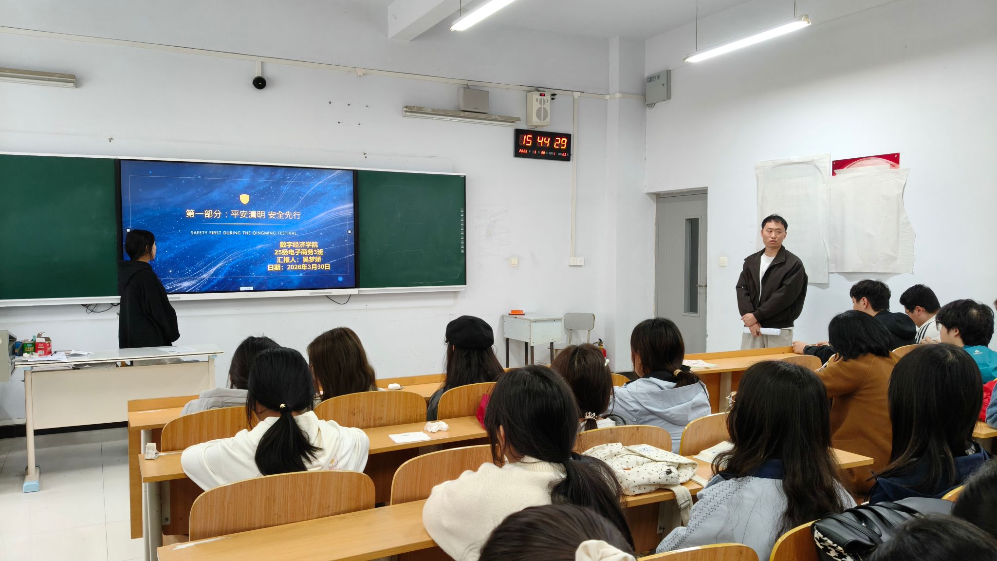 清明将至,为筑牢校园安全防线,切实保障全体师生度过一个平安、文明、健康的假期,数字经济学院于3月30日—4月1日组织在校班级开展“平安清明 安全先行”清明节假期前安全教育主题班会,强化师生安全防范意识。
