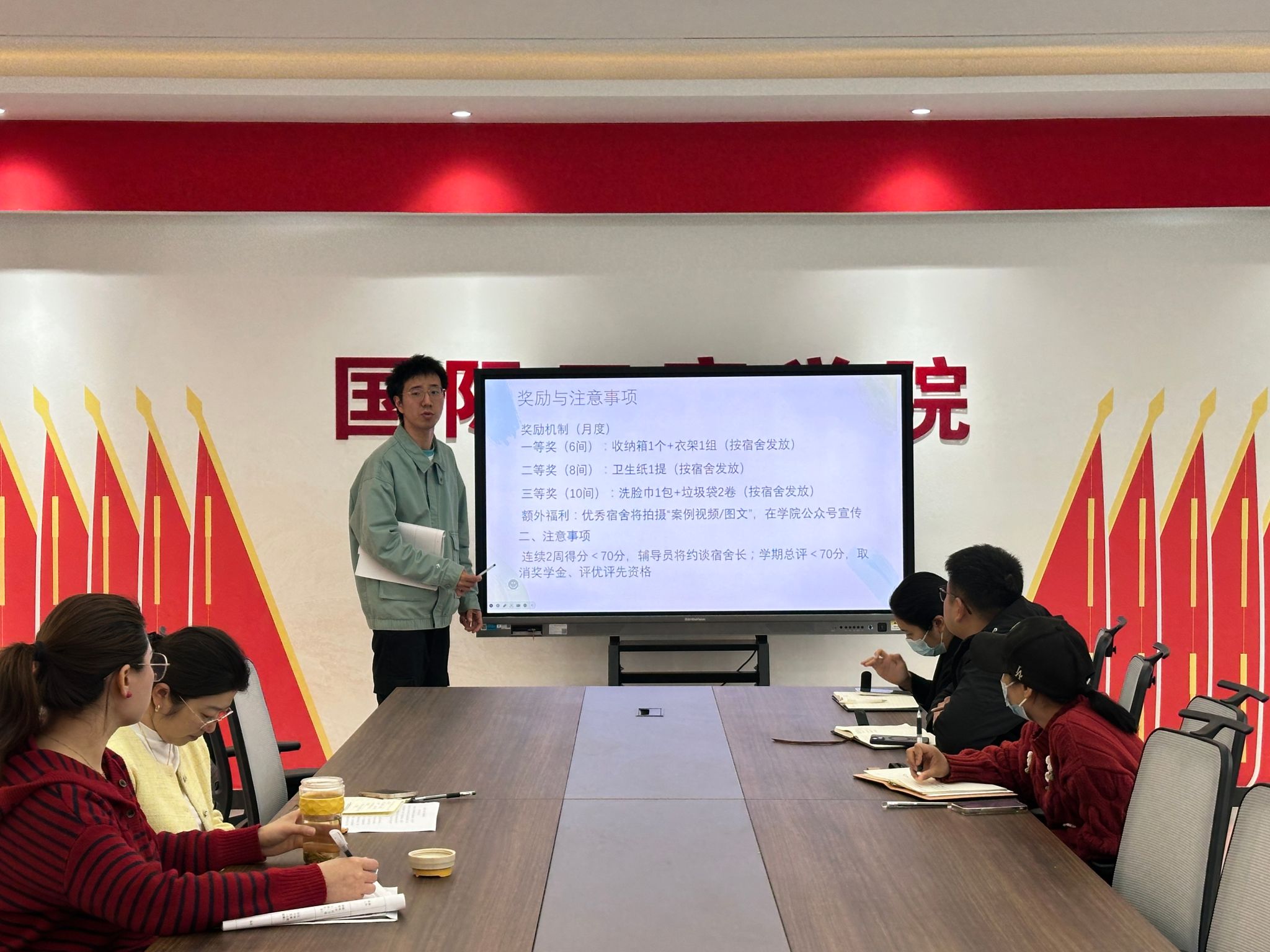 3月26日,学院依托辅导员队伍与学生干部队伍开展活动预热与动员工作。动员会上,李书舟老师详细明确活动时间及卫生打扫标准细则,要求各班生活委员将活动要求“点对点”传达至每间宿舍。同时,结合辅导员下沉学生公寓的工作机制,学院对宿舍清洁整改成效进行全程跟踪与督促。