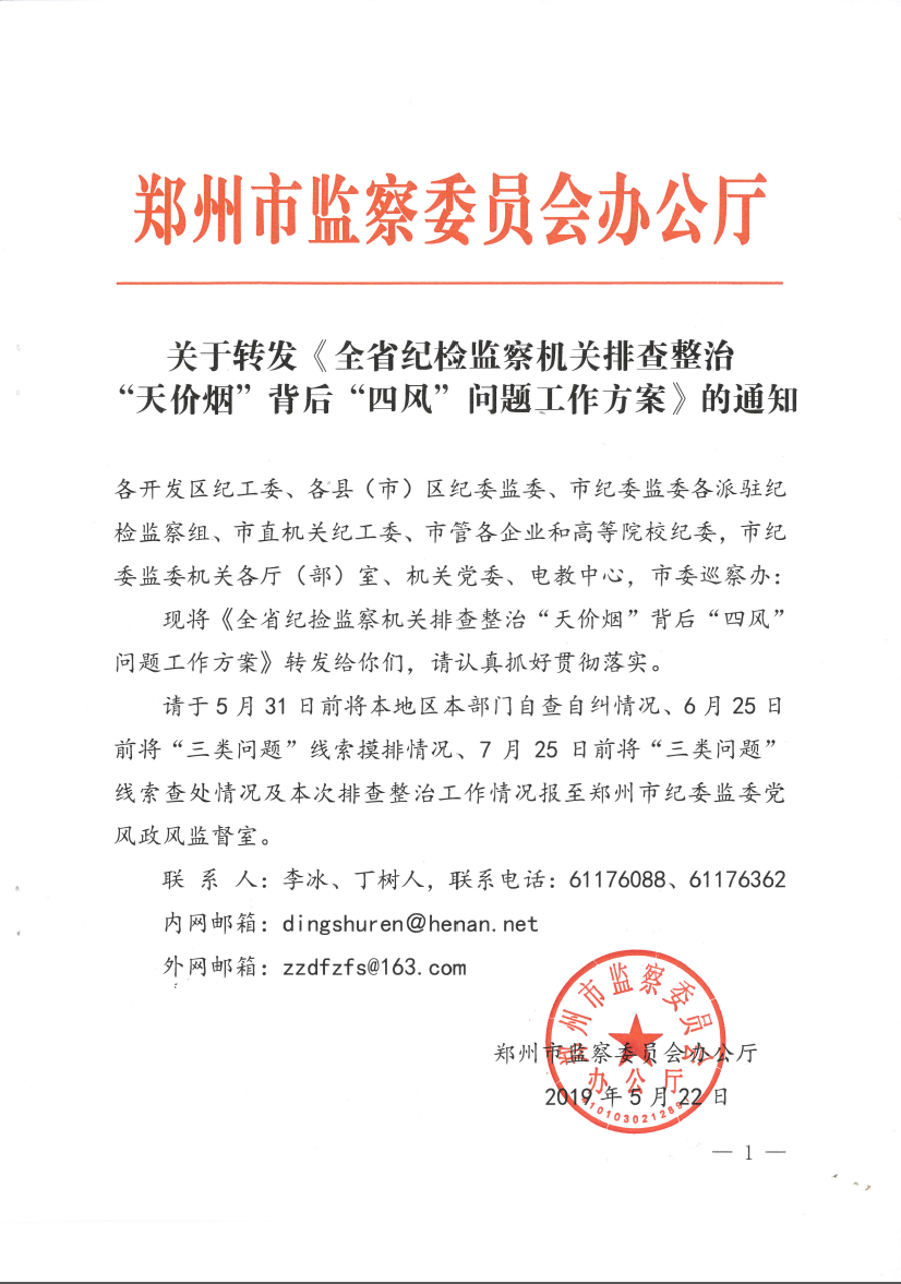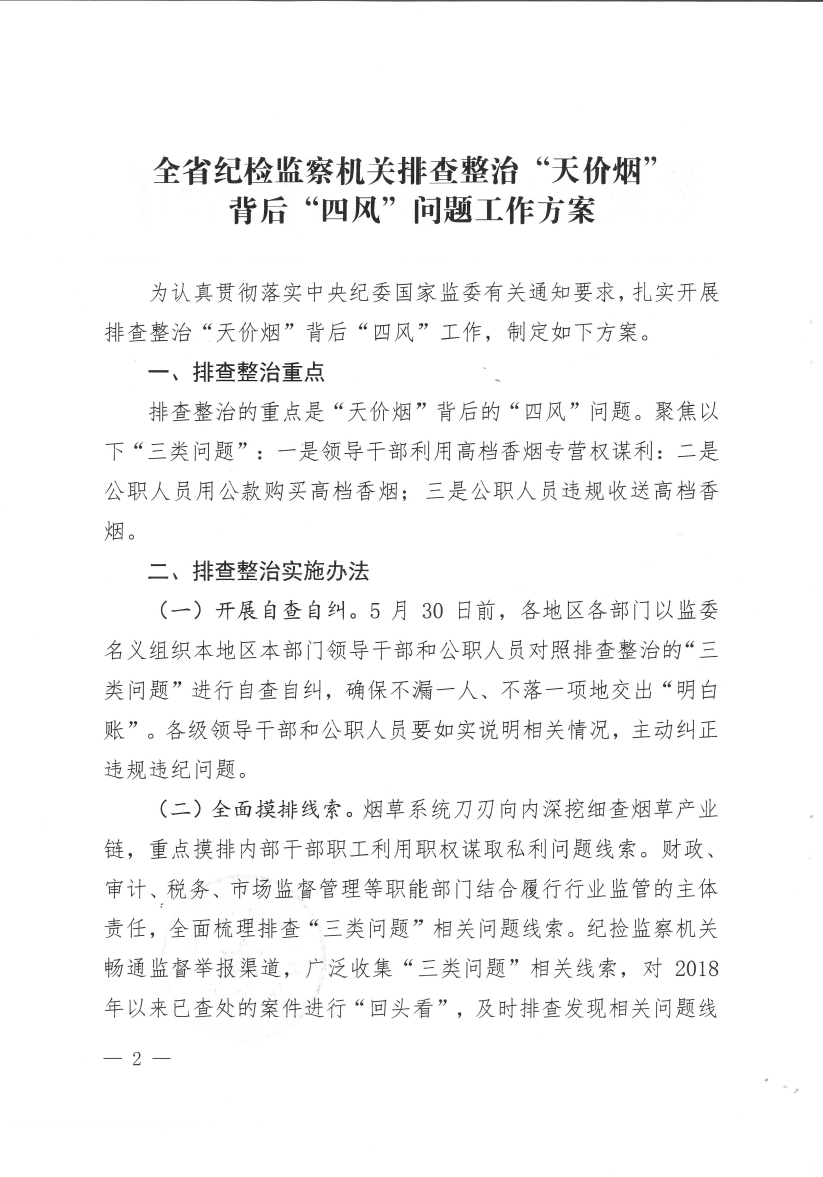 关于转发《全省纪检监察机关排查整治“天价烟”背后“四风”问题工作方案》的通知