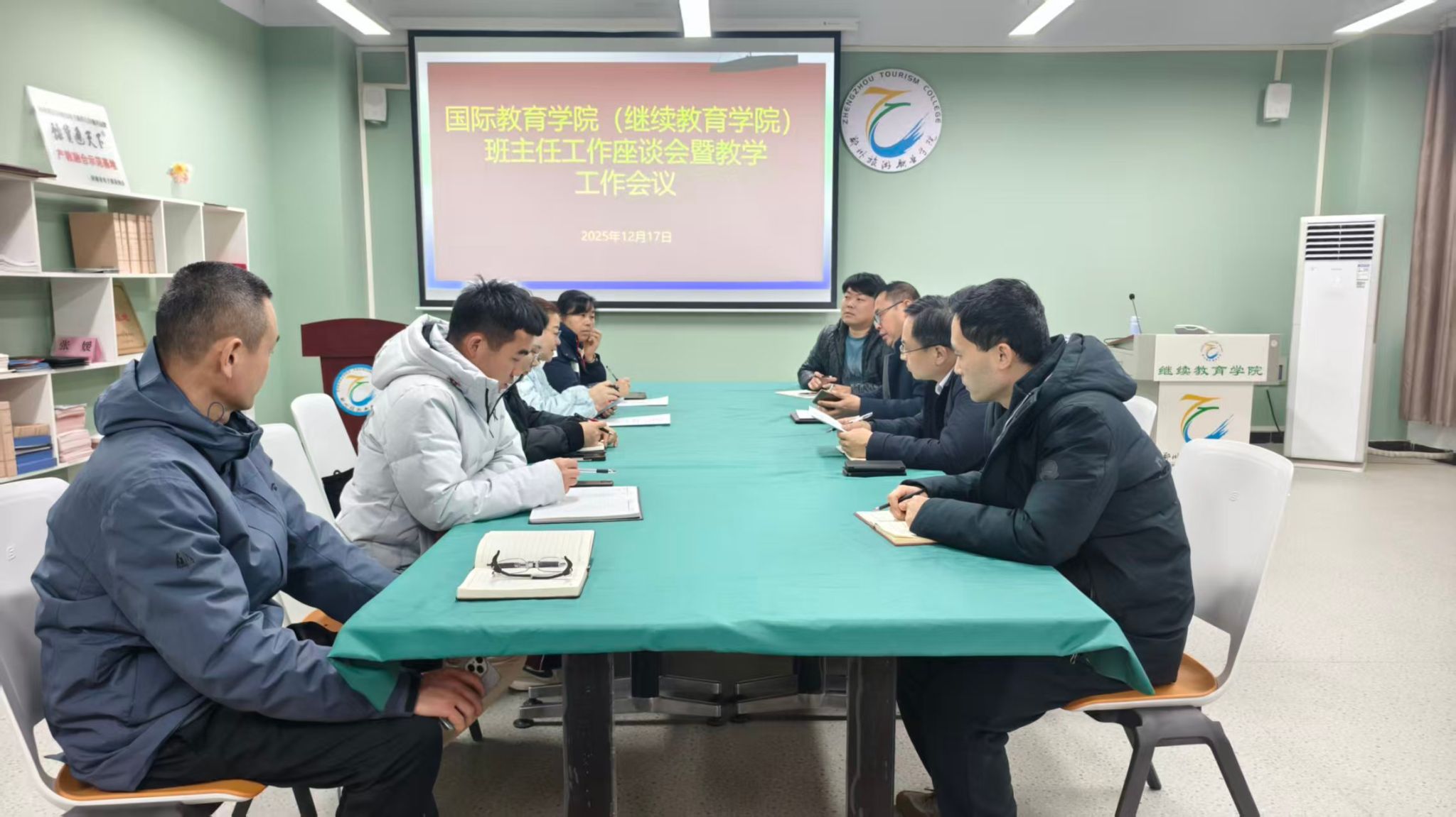 12月17日下午,国际教育学院(继续教育学院)召开班主任工作座谈会暨教学工作会议,院长孙权、副院长刘国强及全体班主任参加会议。