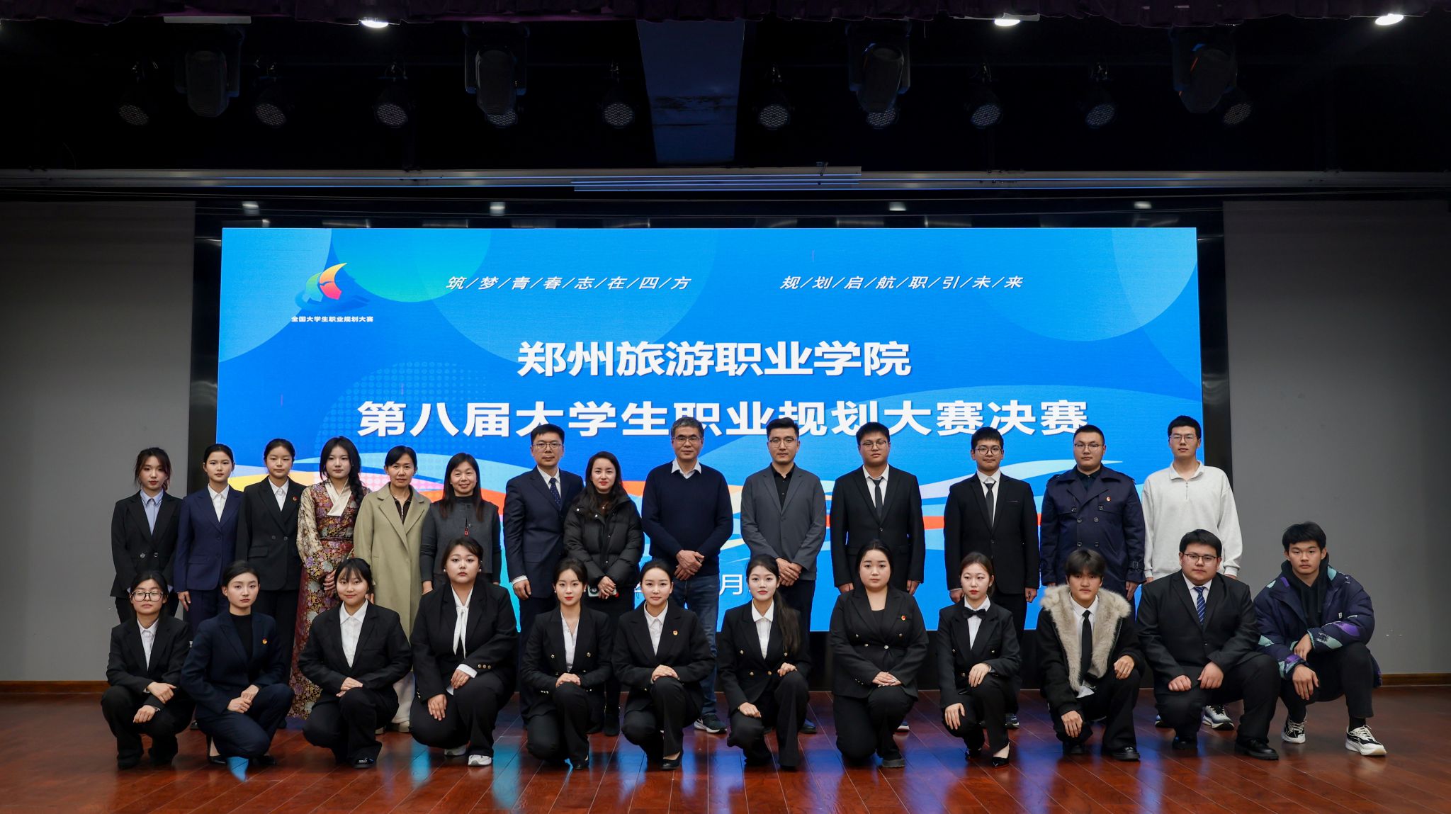 12 月 17 日下午,我校第八届大学生职业规划大赛决赛在综合楼B座四楼演播中心顺利举行。郑州师范学院就业办副主任龚雪、河南工程学院副教授叶心宇、郑州八爪鱼教育科技有限公司总经理王智晓和我校刘丽军、刘宁宁老师担任大赛评委,来自郑州铁路职业技术学院、郑州电力高等专科学校等院校的9位观察员和我校各学院领导、决赛项目辅导老师和学生代表观摩了比赛。