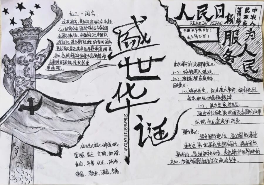 通知一经发出,便得到了同学们的积极响应和热情参与。大家以笔为媒,以纸为笺,将满腔的爱国情怀倾注于创作之中。一幅幅精心绘制的手抄报,构成了校园里最动人的“中国红”风景线。