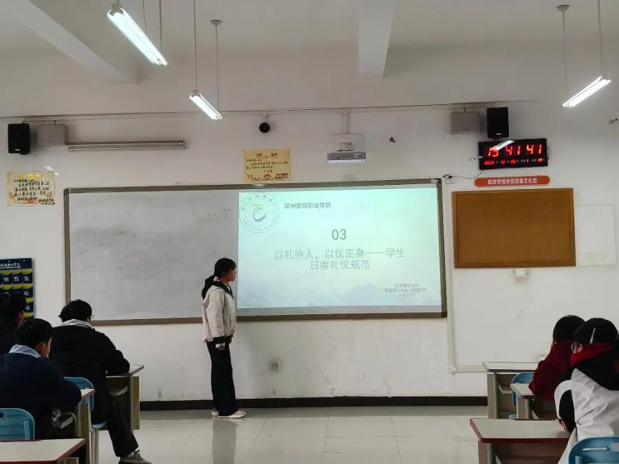 本次主题教育活动紧扣“以礼待人,以仪正身”核心,聚焦新生入学后亟需掌握的礼仪规范与行为准则,由各班班主任担任主讲人,为新生带来生动且实用的“礼仪第一课”。课堂上,班主任们首先系统解读大学生文明礼仪的核心内涵,围绕新生日常高频场景,从仪容仪表、日常行为准则、课堂文明三个维度作出具体要求,引导新生将文明礼仪“牢记于心、外化于行”,自觉融入大学学习生活,争当校园文明的践行者。