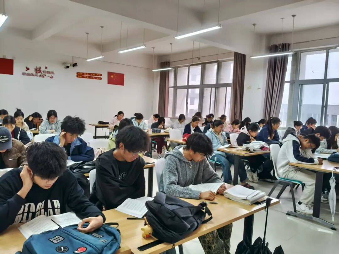 教学楼内,教室早已成为晨读的主阵地。阳光透过窗户洒在课桌上,学子们整齐端坐,有的埋头勾画重点,有的轻声背诵,书页翻动的沙沙声与朗朗诵读声交织成悦耳的晨曲。遇到记忆难点时,同学们会三五成群围坐在一起,通过情景模拟讲解、知识点抢答等方式加深记忆,浓厚的学习氛围感染着每一个人。