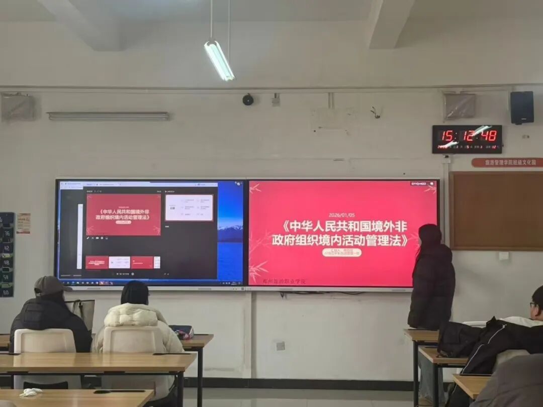 为深入贯彻依法治国理念,切实强化学生国家安全意识与法治素养,1月5日至6日,我院组织各班级陆续召开学习《中华人民共和国境外非政府组织境内活动管理法》主题班会。本次班会由各班班主任主持,全体同学参与其中,共同接受法治教育与国家安全熏陶。