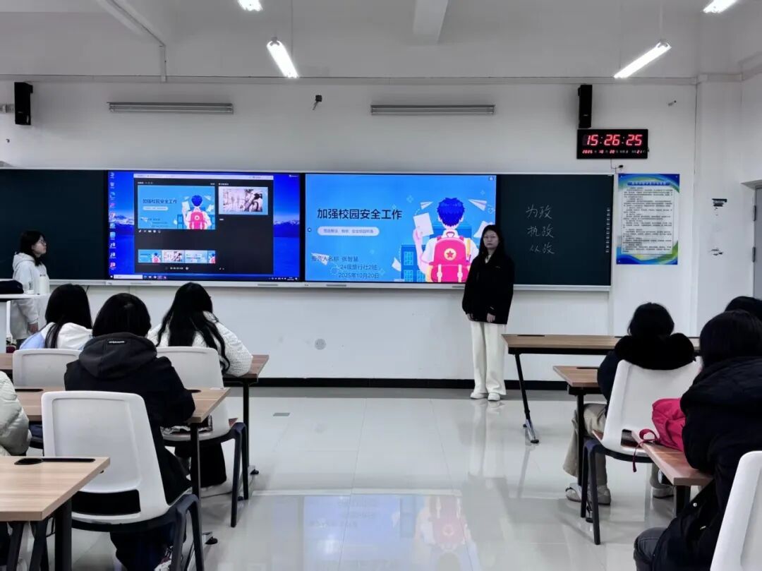 班会上,班主任首先聚焦于自行车规范停放与防盗管理。安全提示为维护整洁、有序、安全的校园环境及同学们的财产安全提供了明确指引,引导大家自觉养成“离车即锁”的良好习惯,严禁占用消防通道、楼宇出入口等公共区域,呼吁同学们相互提醒、共同监督,将规范停车与及时锁车内化为一种自觉行为,携手消除安全隐患。