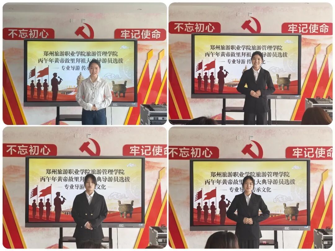为深入服务丙午年黄帝故里拜祖大典这一国家级重大文化活动,严格落实丙午年黄帝故里拜祖大典组委会关于选拔抽调导游讲解人员的工作要求,充分展现郑州旅游职业学院学子专业素养与青春风采,旅游管理学院高度重视、周密部署,于4月2日下午规范开展拜祖大典导游讲解人员专项选拔工作,圆满完成选拔任务。