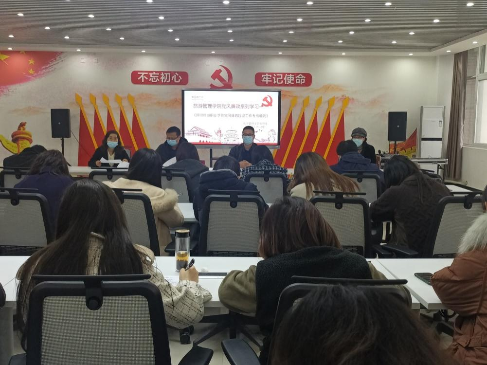 为进一步贯彻落实党风廉政建设责任制,2021年11月20日,旅游管理学院全体党员干部在我院党建馆召开了《郑州旅游职业学院党风廉政建设工作考核细则》旅游管理学院专题学习会。