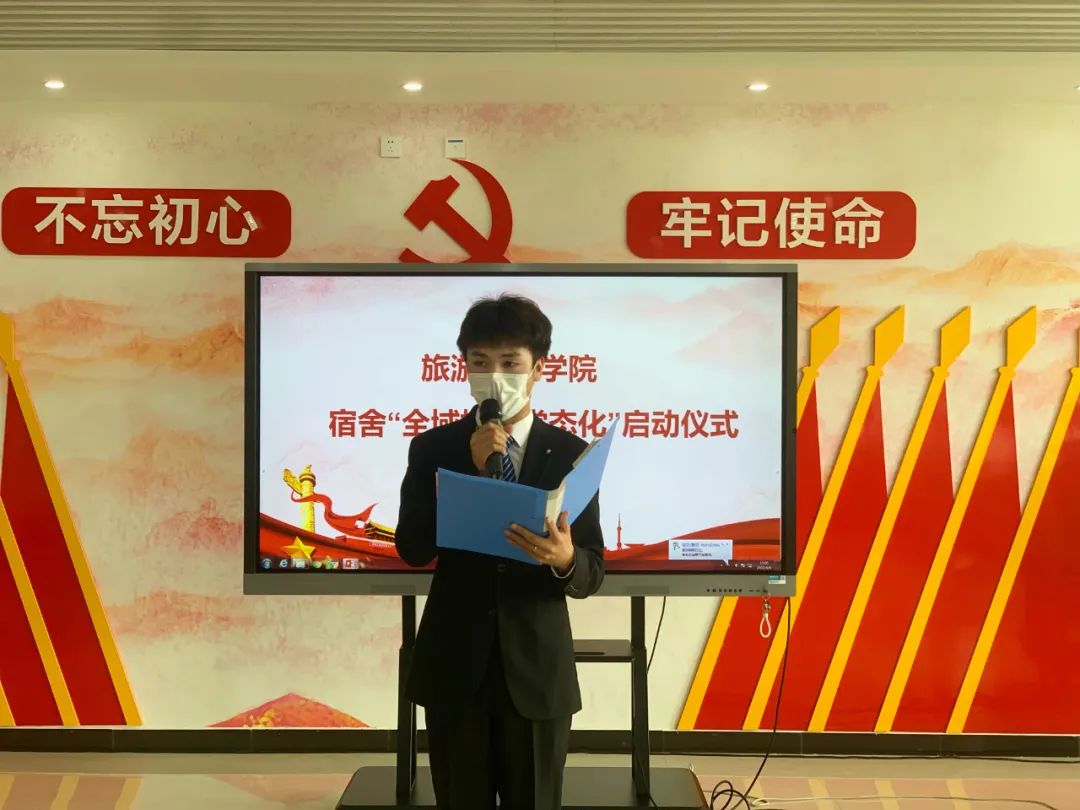 张卿颜宣读了《旅游管理学院关于开展宿舍“全域标准常态化”实施方案》,强调本次活动以宿舍“全域标准常态化”为主题,具体活动内容包括“宿舍全域标准化”“和宿舍标准常态化”两大部分,希望同学们能够严格要求自己并持之以恒,养成良好的内务习惯。