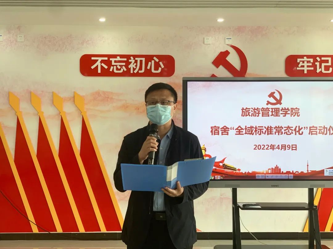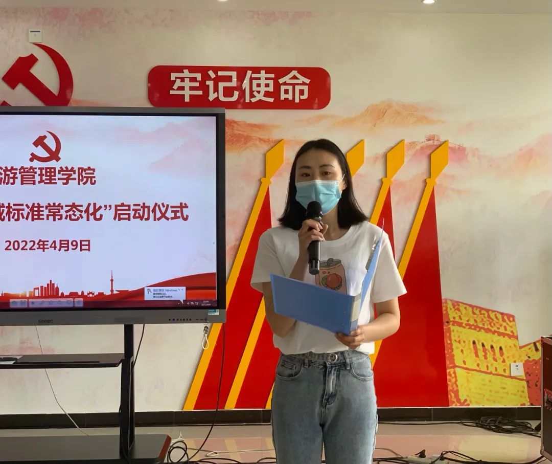 4月9日下午,学院宿舍“全域标准常态化”启动仪式在5号楼党建馆成功举办。旅游管理学院党总支副书记张楗让、团总支代书记张颖、辅导员张卿颜和苏涛以及各班级生活委员参加启动仪式。仪式由学生张云朋主持。