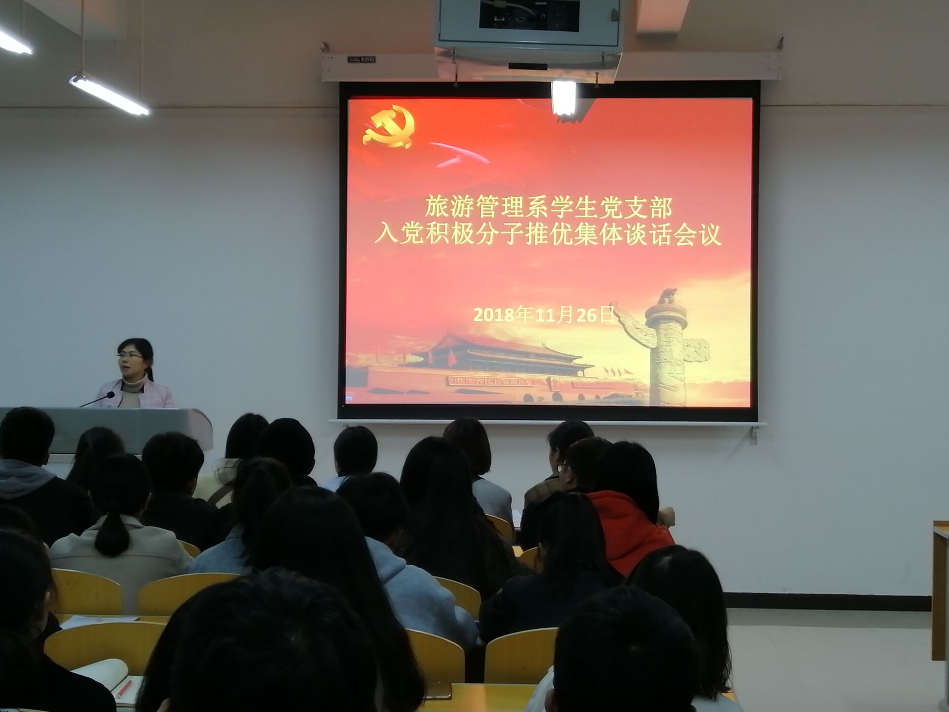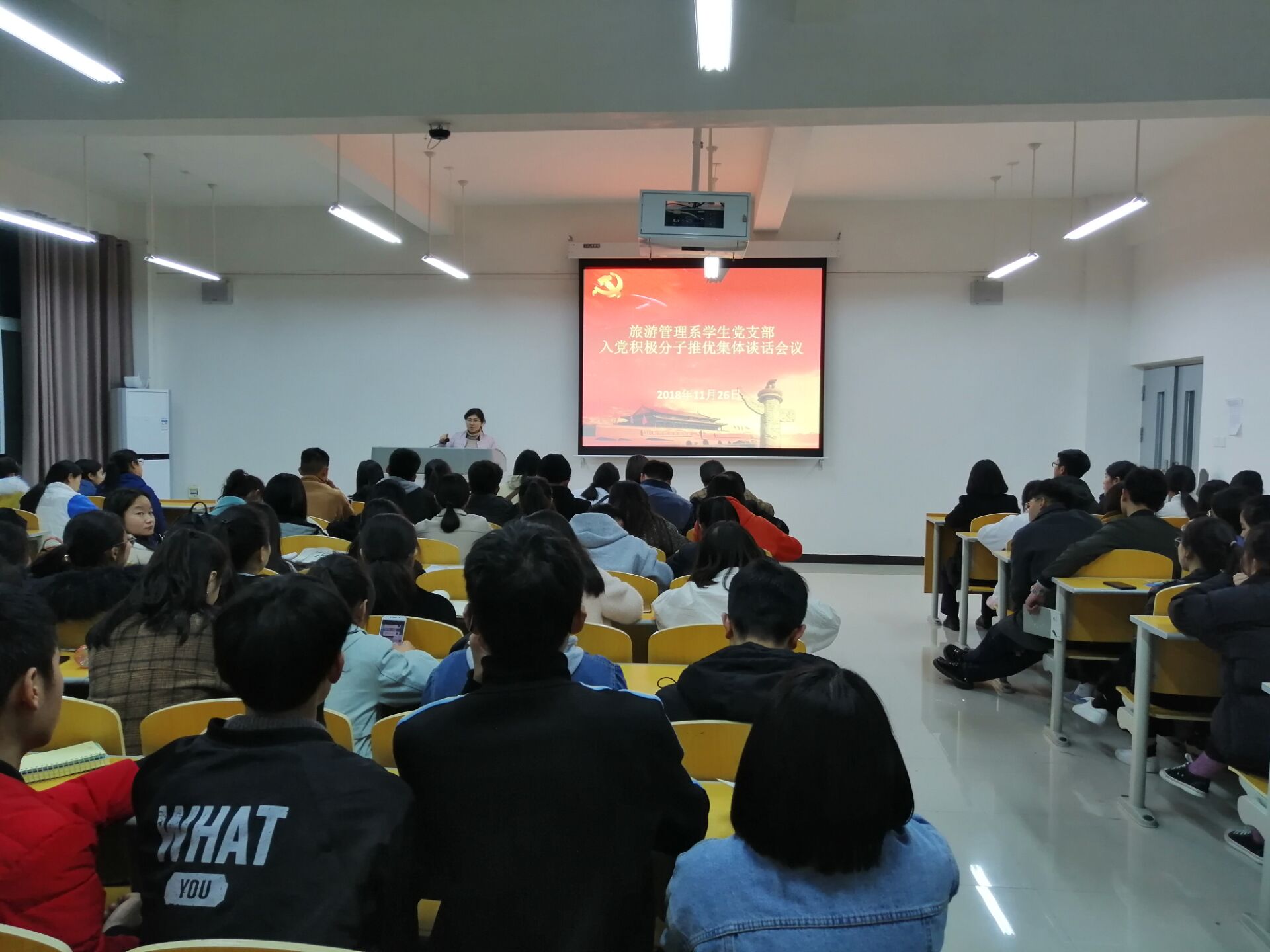 11月27日下午6:30,我系学生党支部在5号教学楼A座404教室开展入党积极分子推优集体谈话会议。会议由团总支书记金慧慧主持。各班入党积极分子参与会议。