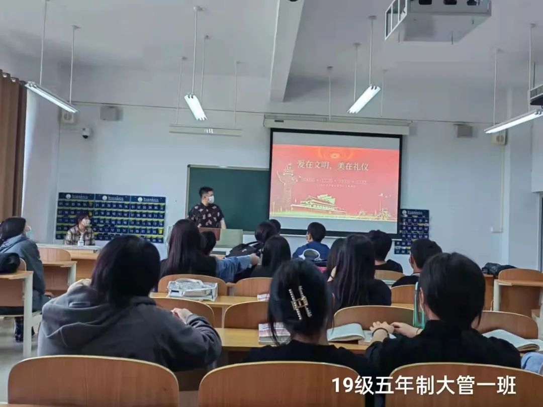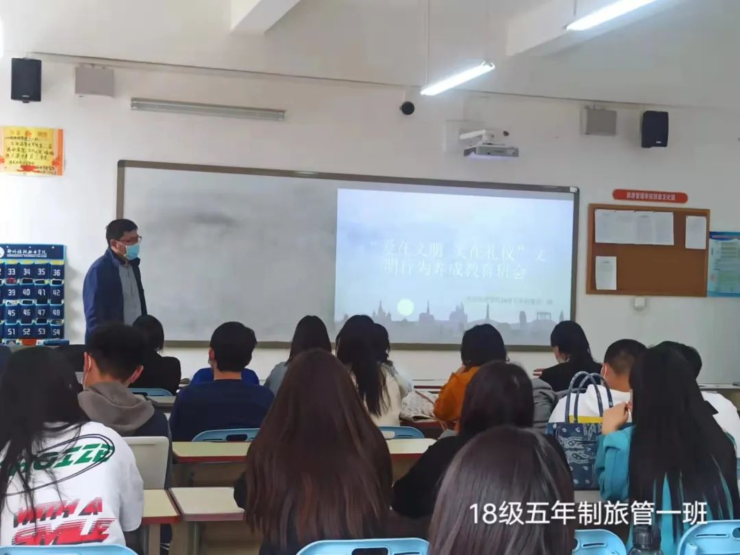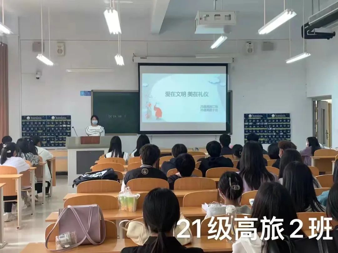 2022年4月6日,旅游管理学院“爱在文明,美在礼仪”文明素养提升活动月启动仪式主题班会在5号教学楼内开展。学院全体学生参加,班会由各班班主任主持。