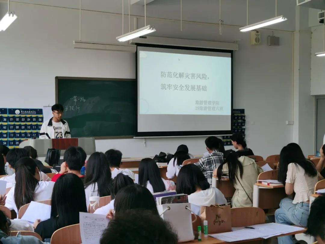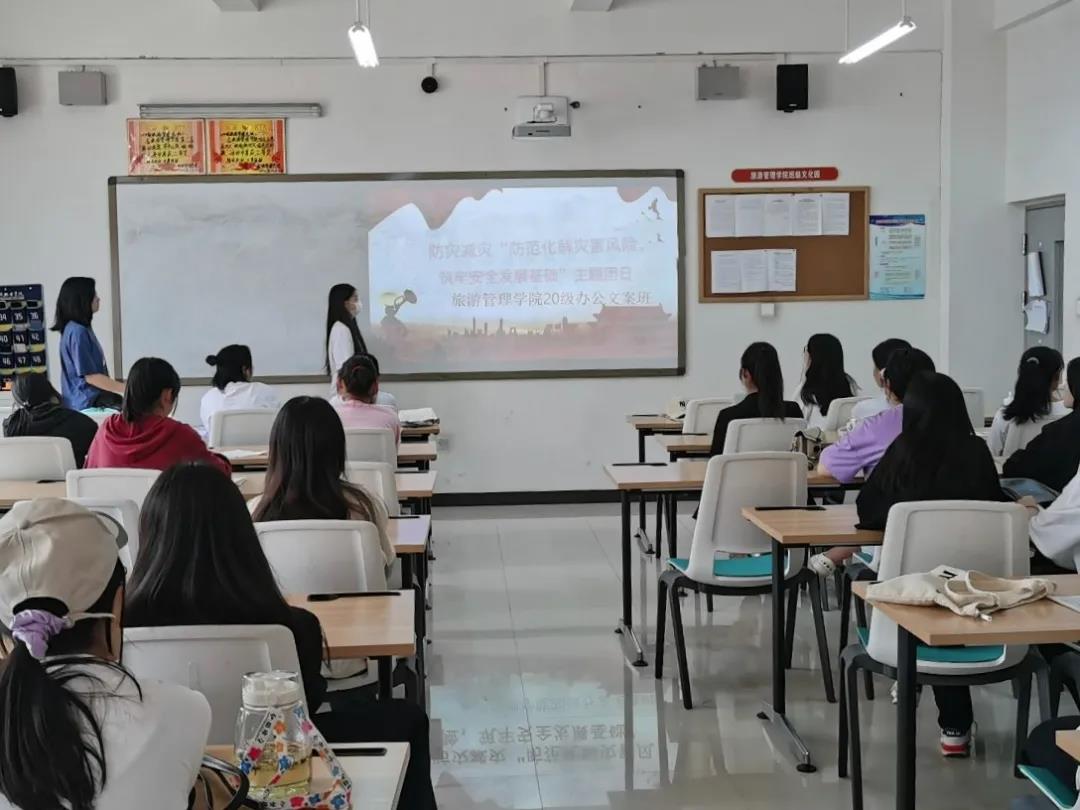 各班宣传委员通过讲述真实案例、观看图片及视频的方式,向同学们普及预防灾害事故的知识和防范灾害的基本技能。班主任老师结合当前学院安全工作的特点,对学生进行了防震减灾、防风防雷电、消防安全、交通安全、防溺水等多方面的知识教育。随后,同学们积极讨论并认真学习了有关防灾减灾的知识,了解了常见的自然灾害及面对灾害的应对方法,有效提高了同学们应急避险、自救与救助他人的能力。