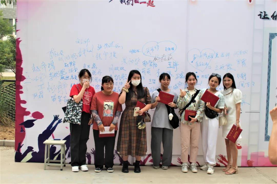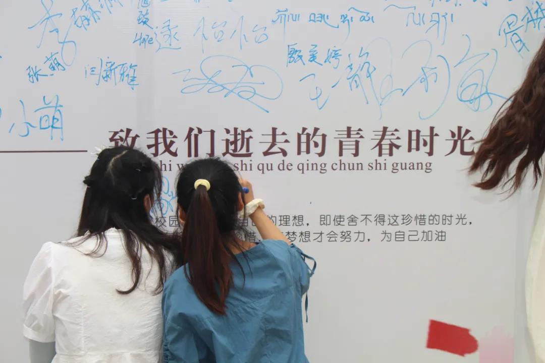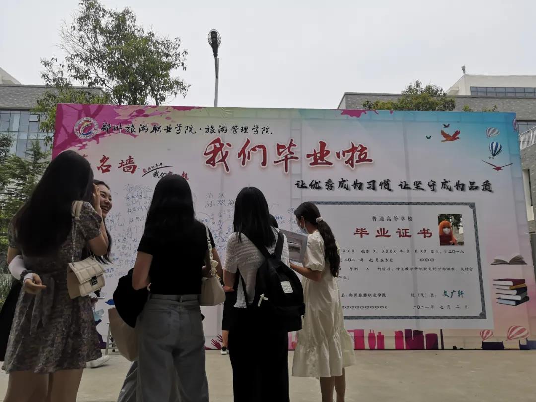 为了更好地将学生毕业和就业工作相结合,旅游管理学院在5号楼前进行了毕业纪念墙和就业宣传栏两个模块的设计,学生在毕业纪念墙签字留念、拍照打卡,在毕业纪念墙上留下了对学校的美好寄语和青春洋溢的笑脸。