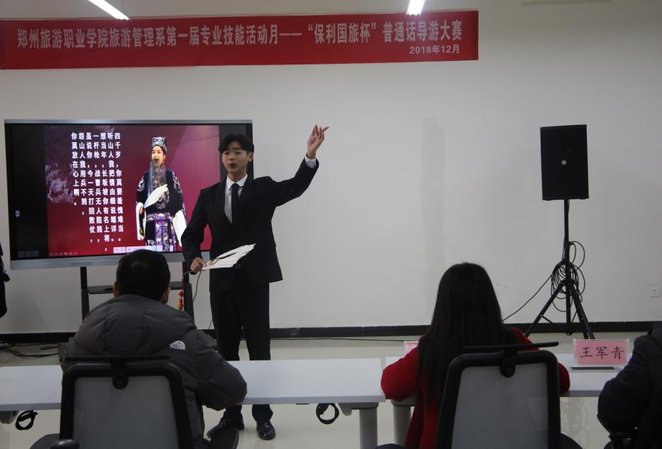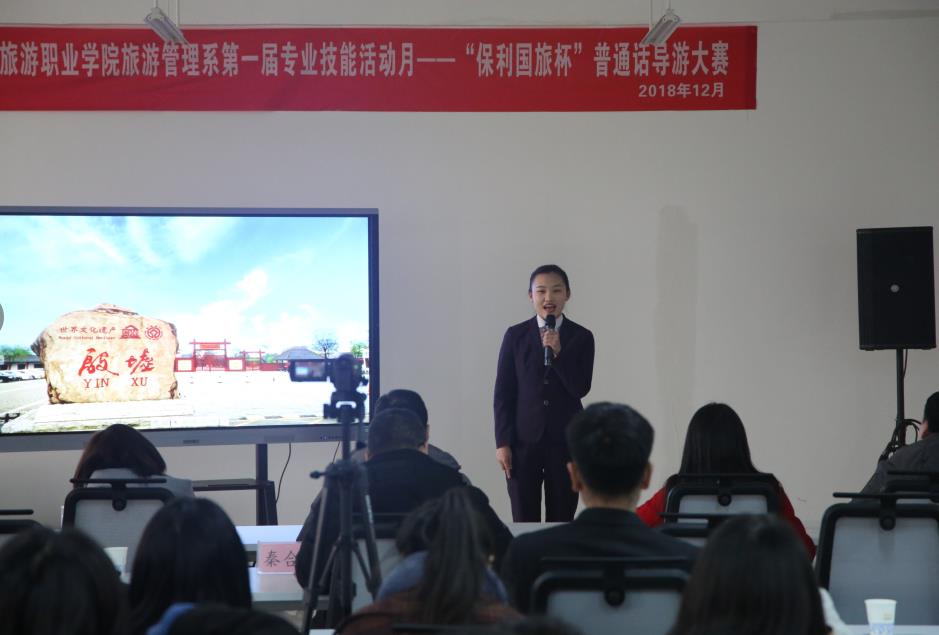 12月27日下午3点,我系第一届专业技能活动月——“保利国旅杯”普通话导游大赛在我系5号楼A403正式拉开帷幕。通过层层选拔,脱颖而出的10名导游员共聚一堂,将凭借个人风采和业务素质,角逐大赛的桂冠。担任本次大赛的评委老师有保利国际旅行社总经理常晨霞,我系专业课教师杜鑫、李亚男、郭盼盼、王军青老师等。