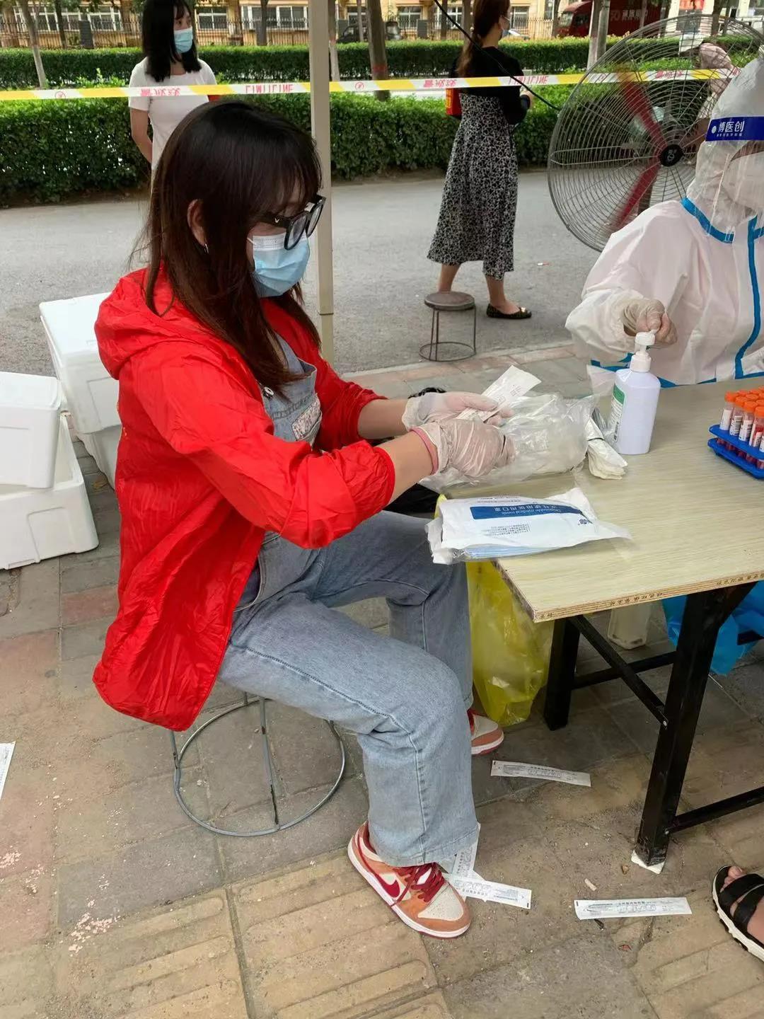 四、经受磨砺,蜕变成长。 民族复兴的使命要靠奋斗来实现,人生理想的风帆要靠奋斗来扬起。张阳琳坦言,自己很荣幸能作为一名志愿者参加到这次防疫抗疫的核酸检测工作中,和医护人员一起冲锋在一线、战斗在一线。越是艰苦的环境越能锻炼人。尽管每次需要在天气闷热的环境下带着口罩十几小时不停的工作,尽管每次工作后回到家都累的倒头就睡,但是她感觉“自己在做有意义的事,心是热乎的,仿佛在新生,希望用我的这颗星星之火可以给这个社会带来更多的帮助。”她表示,虽然目前的工作很“渺小”,但是依然会继续努力做下去,就像鲁迅先生说的能做事的做事,能发声的发声,有一分热,发一分光,就如萤火虫一般,也可以在黑暗里发一点光,不必等候炬火。奋斗是青春最亮丽的底色,张阳琳在自己的奋斗路上,把青春的底色擦的锃亮。