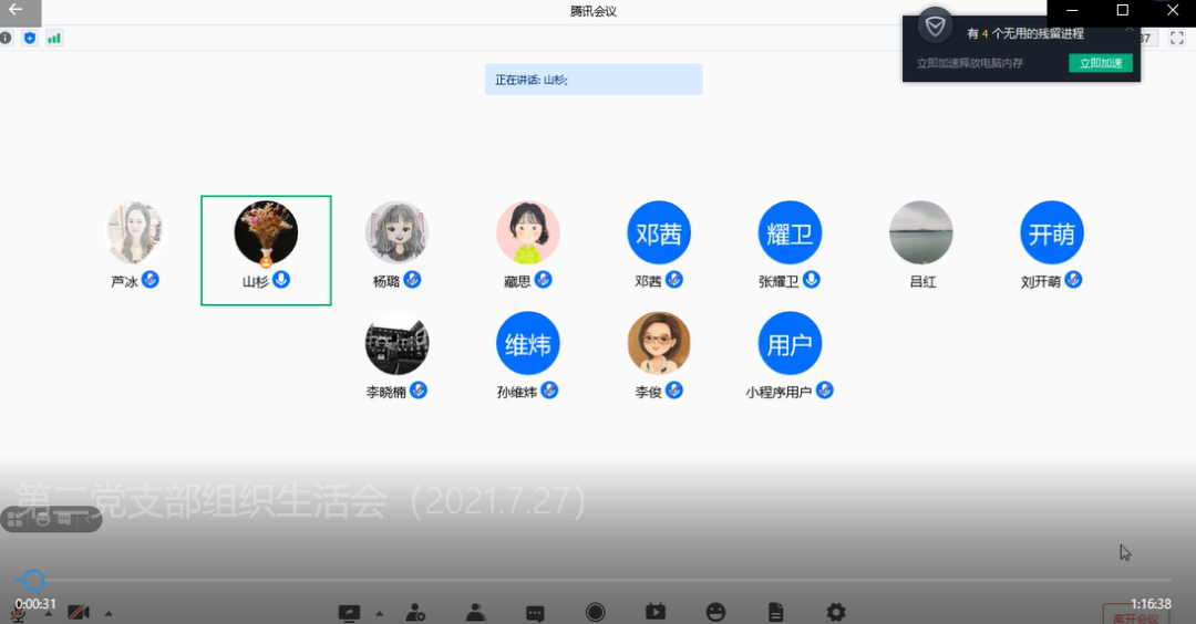 2021年7月27日上午,旅游管理学院第二党支部在线上通过腾讯会议召开了专题组织生活会。会议由支部书记山杉主持,他首先通报了五月份市委巡视组指出的问题以及支部前阶段对照检查情况,然后党支部同志逐一做了批评与自我批评,接着旅游管理学院院长李俊对大家剖析的问题做了点评并指出了其它问题,最后支部书记山杉对此次会议做出了总结。