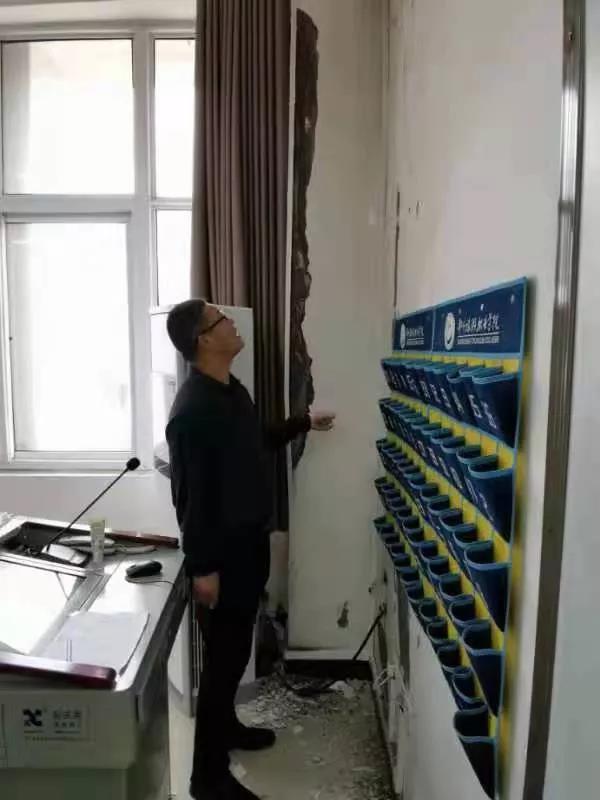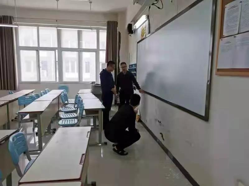 旅游管理学院领导在排查中发现了指示灯不亮、墙壁脱落、电线裸露等问题,及时解决并处理。