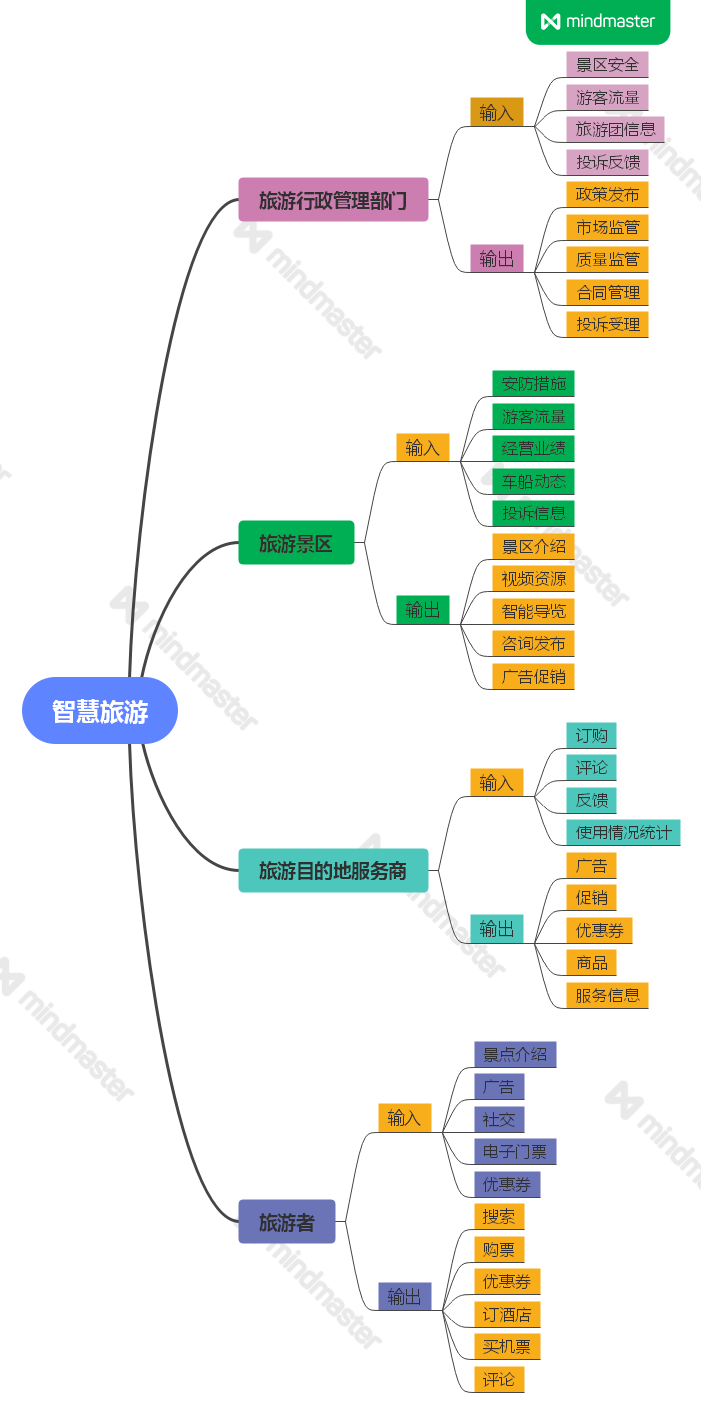 智慧旅游的用户主体主要有旅游行政管理部门、旅游景区、旅游目的地的各类服务商和旅游者。各用户主体运用智能化技术,通过不同的业务功能来控制信息流在不同用户主体间的输入和输出。