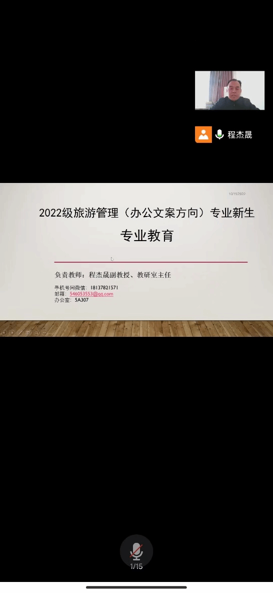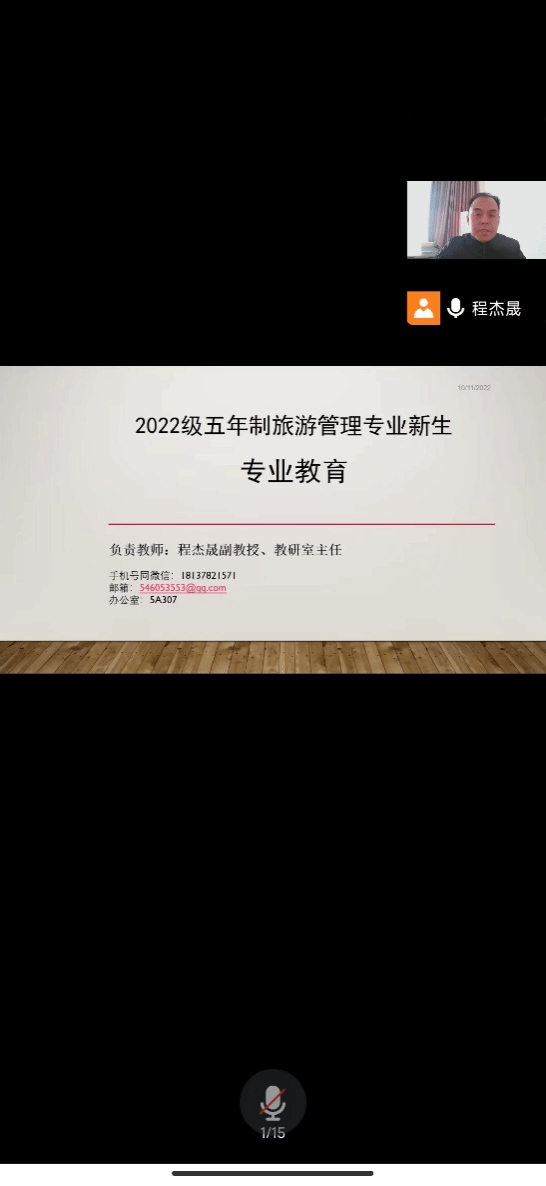 根据学院工作安排,2022年10月11日下午,旅游管理学院专业基础教研室专业建设团队对所负责的五年制旅游管理和旅游管理(办公文案方向)两个专业的2022级新生班级,通过腾讯会议平台进行了线上专业教育活动。