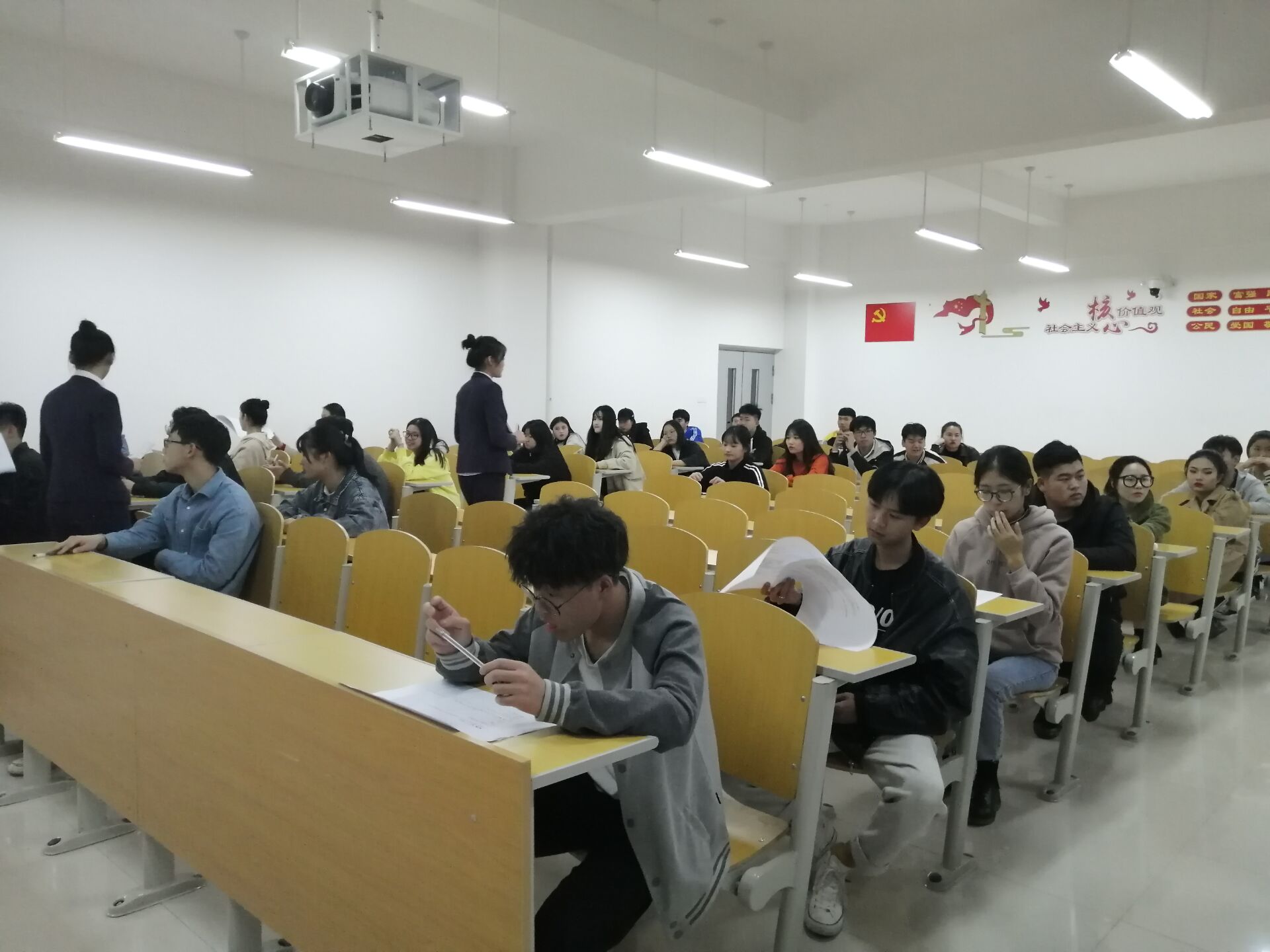11月14日下午17时,我系第二十二期转型培训班结业考试在五号教学楼A502教室举行。转型培训班共55名同学参加此次考试,学生会纪律部陈佳宁同学主持并担任监考。