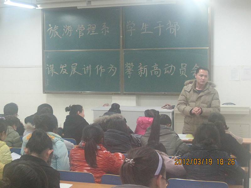 2012年3月19日晚6时,我系在西教学楼二楼203阶梯教室召开学生干部动员大会,全面贯彻学院“谋发展、讲作为、攀新高”活动精神。