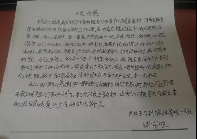 为深入落实河南省教育厅、学校党委关于组织收看系列思政专题课通知,进一步深入学习贯彻习近平总书记在庆祝中国共产党成立 100 周年大会上的重要讲话精神,广泛宣传全省上下防汛救灾、疫情防控的生动实践,把思政小课堂融入社会大课堂,引导广大学生感党恩、跟党走,进一步将此次思政专题理论课转化为支持防汛救灾、疫情防控的强大力量,9月18日下午,旅游管理学院组织全院师生通过省教育厅官网、微信公众号等多种渠道共上思政专题课。