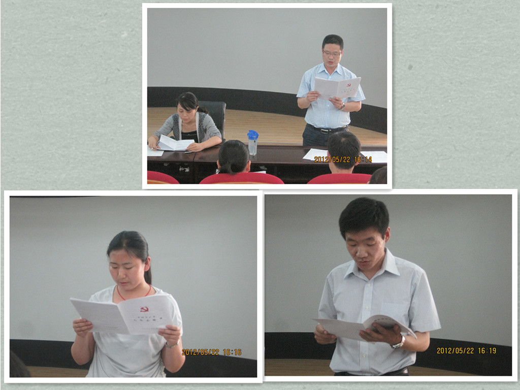 会中,在肖靖书记的组织、主持下,全体党员对杜鑫同志的入党转正进行举手表决,并一致通过。之后,张笃川、芦冰、牛亚飞等同志介绍了秦和刚和牛冬霞两位同志的作风、事迹,全体党员对秦和刚、牛冬霞同志两位教师的入党进行举手表决,并一致通过。杜鑫、秦和刚及牛冬霞等三位同志在大会通过其入党(转正)后,分别发表入党(转正)感言,他们明确表示,感谢党组织的培养,感谢各位党员的帮忙,将在新的时期戒骄戒躁、不断学习、努力提高,真正做到顾大局、讲原则、树新风,争取成为一名优秀的共产党员。