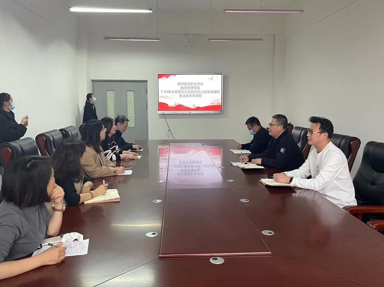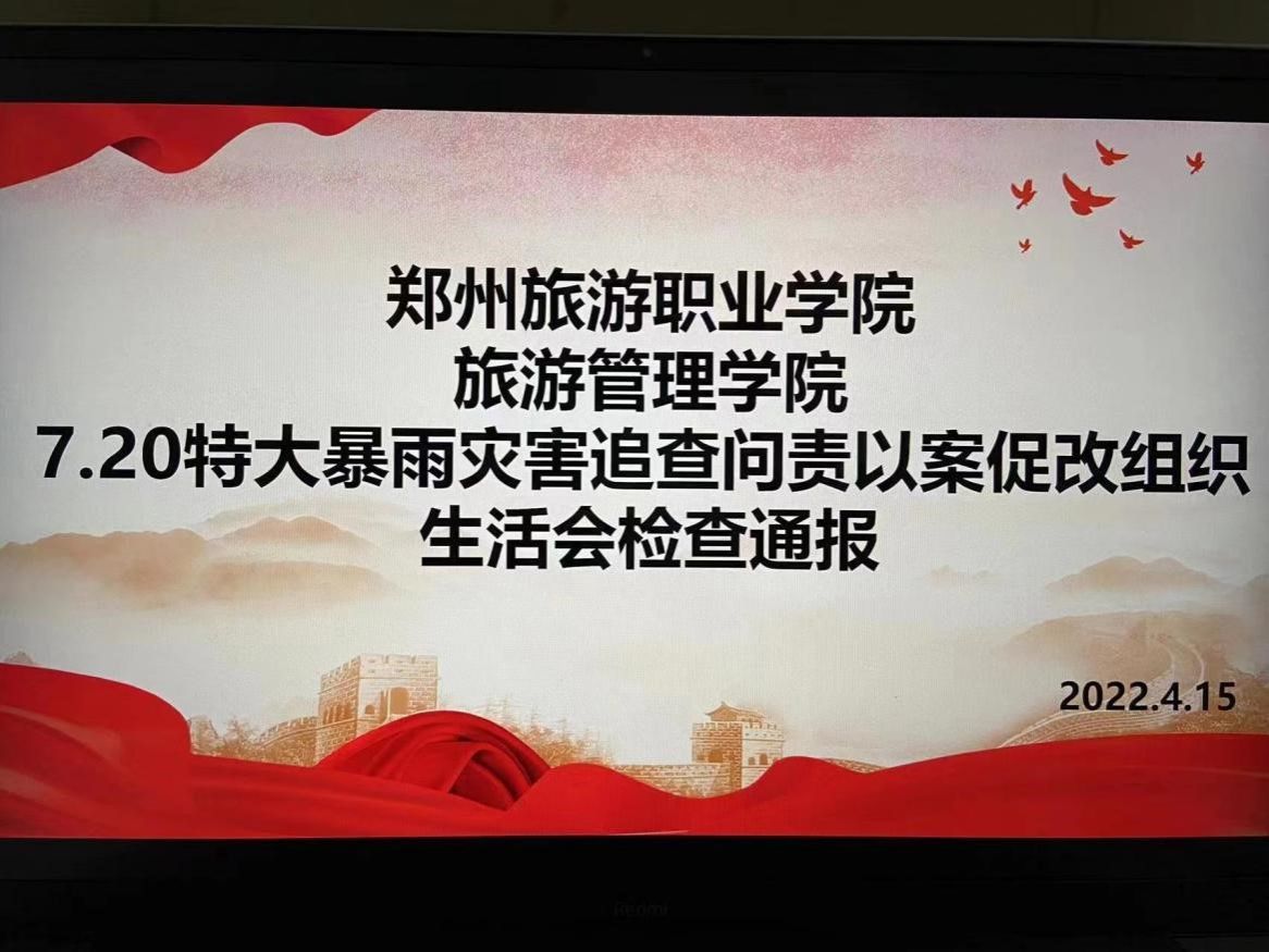 2022年4月15日,旅游管理学院“7.20” 特大暴雨追责问责以案促改组织生活会检查通报会在5A401会议室召开。会议由学院党总支书记秦合岗主持。学院党员教师参加会议。