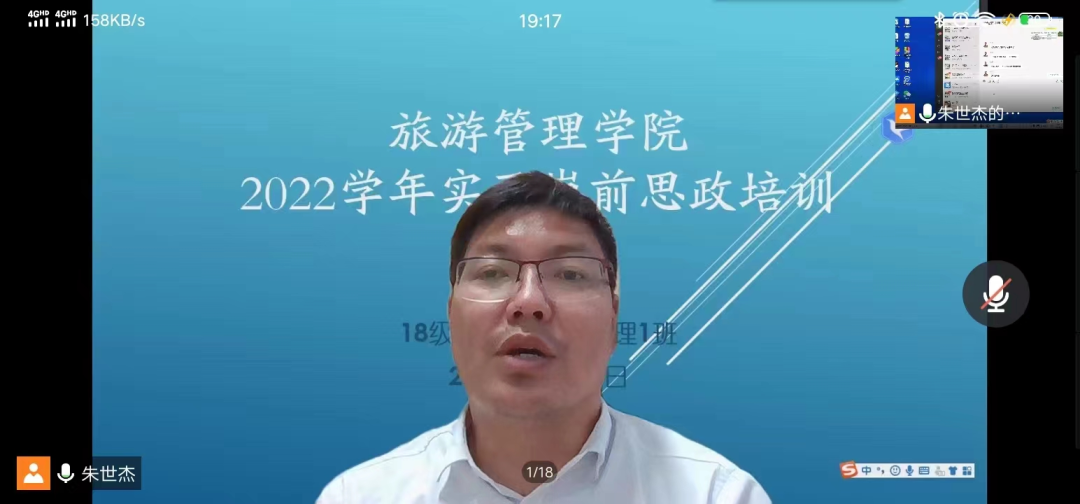 根据学校实习工作安排,旅游管理学院2020级各班于5月16—5月18日召开了实习生岗前思政教育培训班会,各班班主任利用线上、线下等方式组织岗前思政培训。