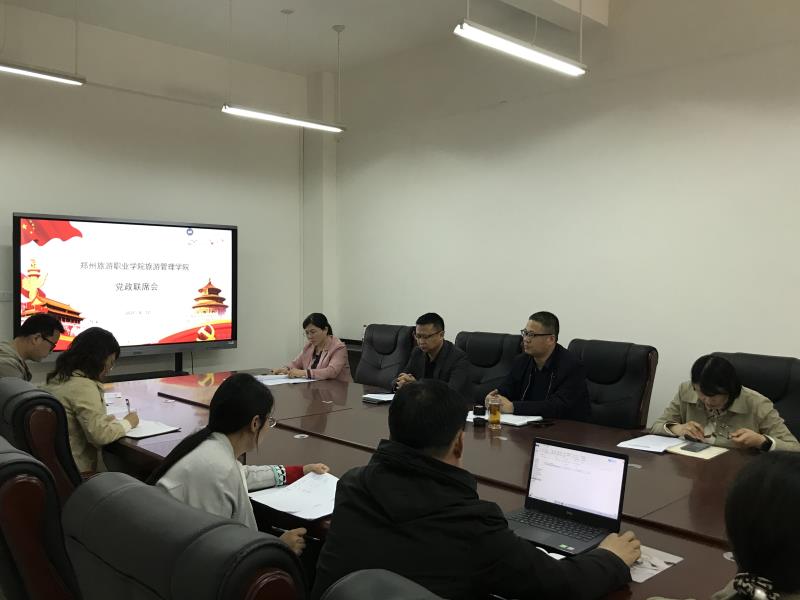会议传达学习了《中共郑州旅游职业学院委员会党史学习教育工作方案》《2021年中共郑州旅游职业学院党委(党总支)两级理论学习中心组学习安排意见》《中共郑州旅游职业学院委员会关于表彰2020年度新闻宣传工作先进集体、先进个人的决定》《郑州旅游职业学院采购管理实施办法(试行)》文件内容,促进与会教师深入掌握文件精神的核心要义和规范要求。会议听取了各责任人关于工作开展情况汇报,审议了旅游管理学院记者站建设方案。