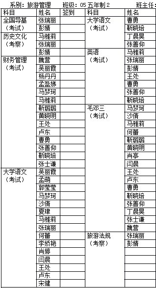 2010年高职生补考名单(05大管2班)08-09第二学期