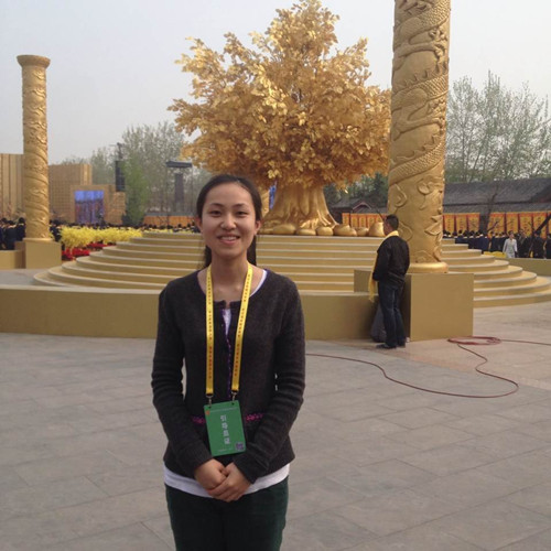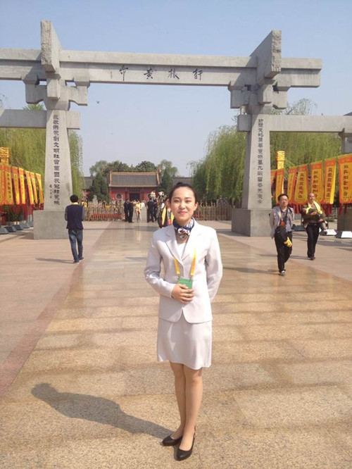 拜祖大典现场,旅游管理系12级高旅七班姬雅梅同学尽职尽责,热情服务,为游客进行河南概况、炎黄文化知识宣传、讲解服务,展现出了旅游管理系同学们良好的精神风貌和深厚的文化底蕴。志愿者们坚持弘扬“奉献、友爱、互助、进步”的精神,在以饱满的热情协助做好拜祖大典各项工作的同时也收获了不少乐趣。