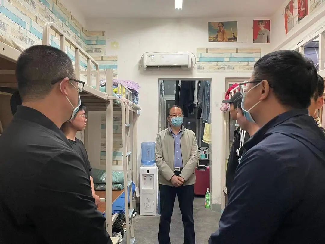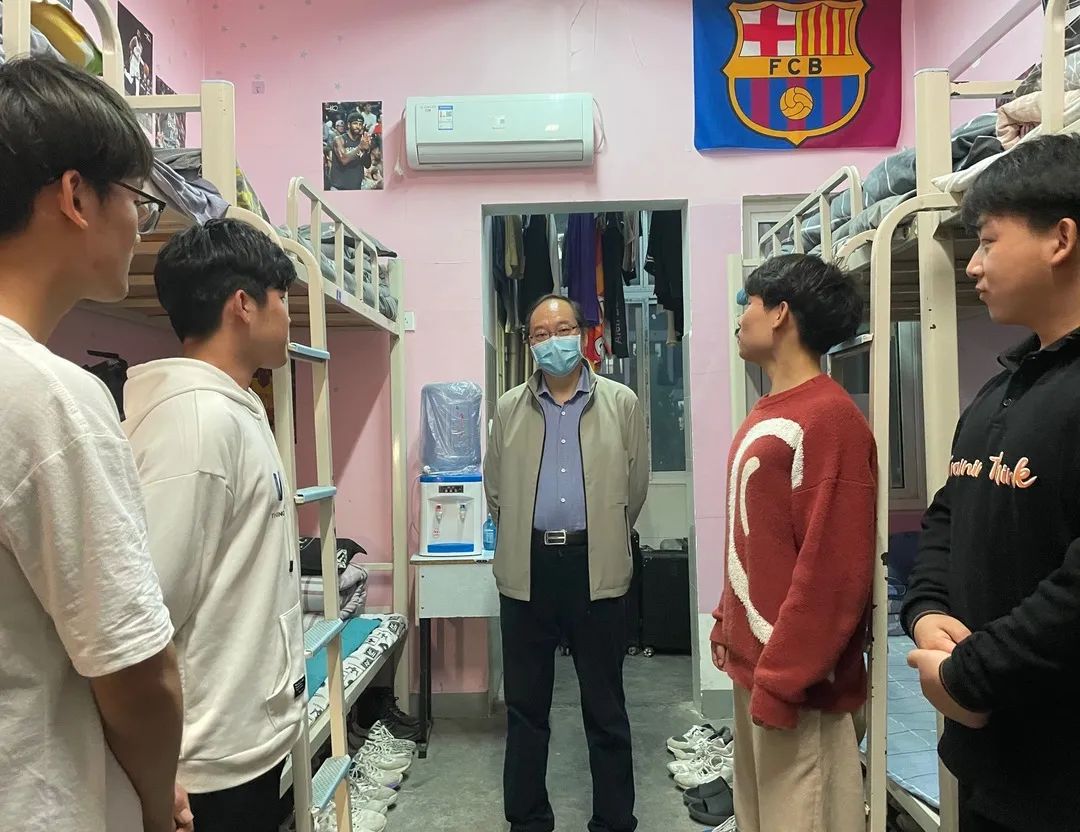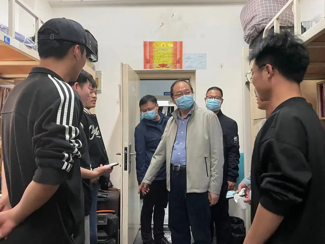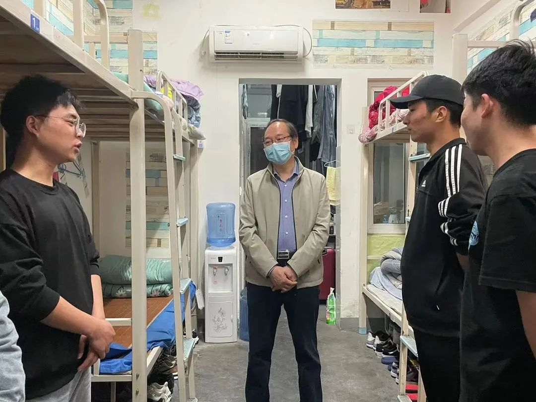 2022年5月12日晚,郑州旅游职业学院党委副书记、校长文广轩在旅游管理学院党总支书记秦合岗、党总支副书记张楗让及值守学工人员的陪同下,深入旅游管理学院宿舍与学生面对面“拉家常、聊近况、话防疫”。