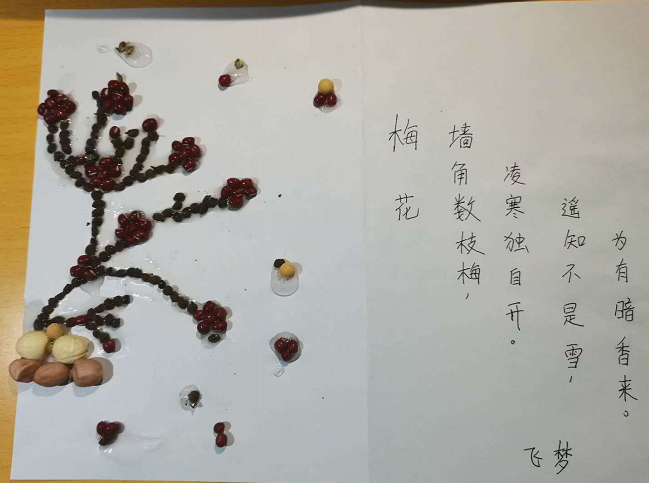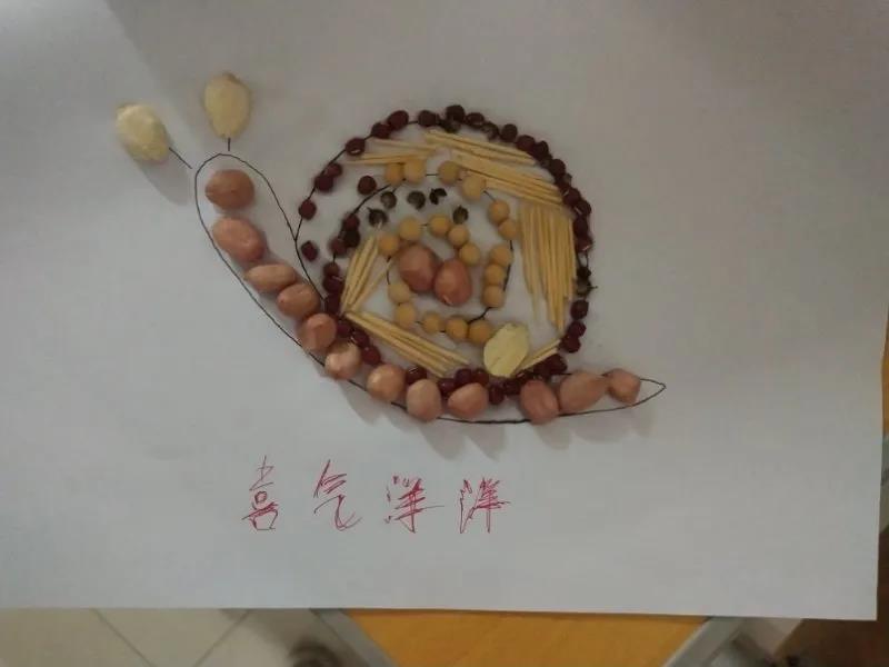 学生在体验研学旅行丰收节课程项目时制作的五谷画作品