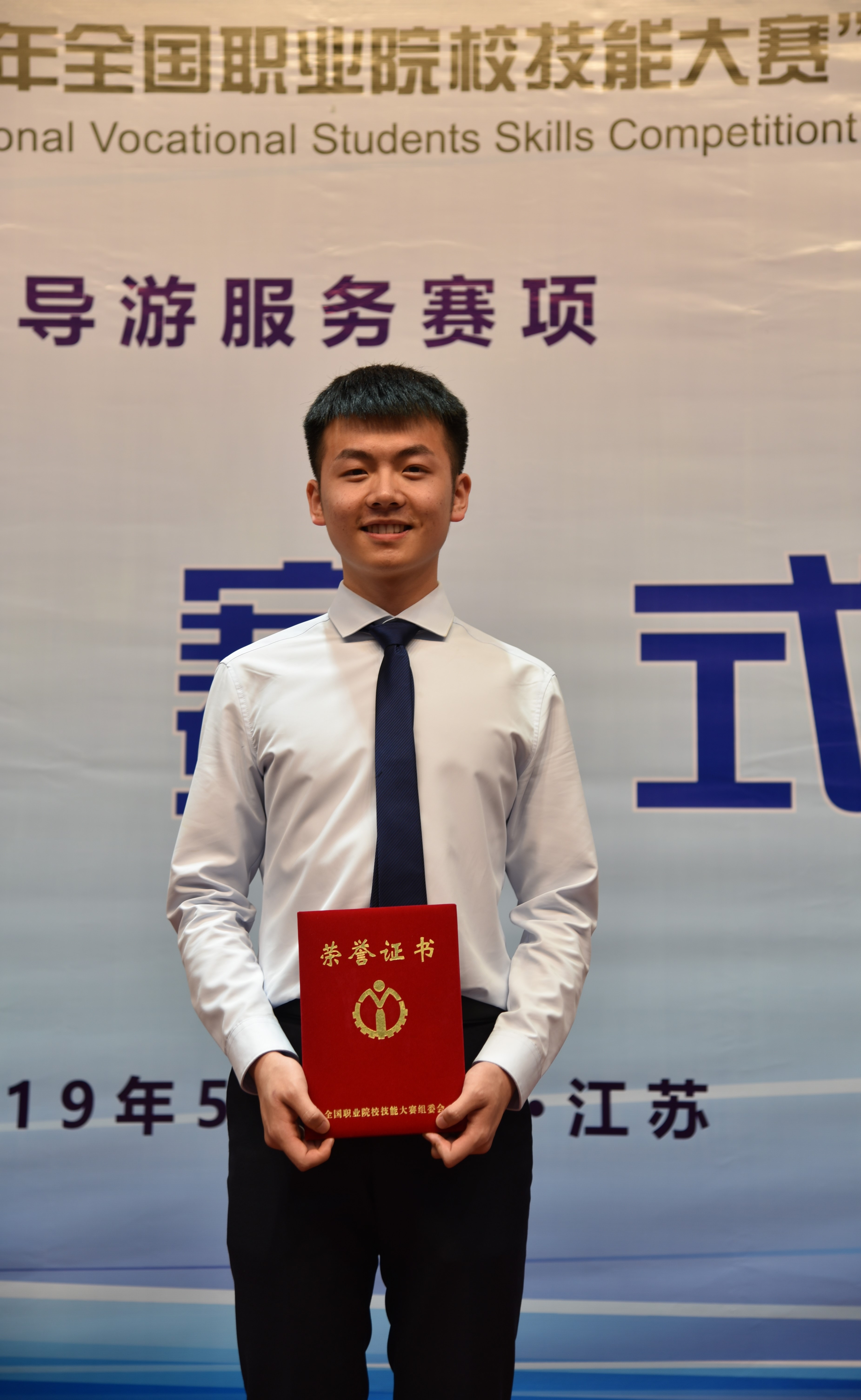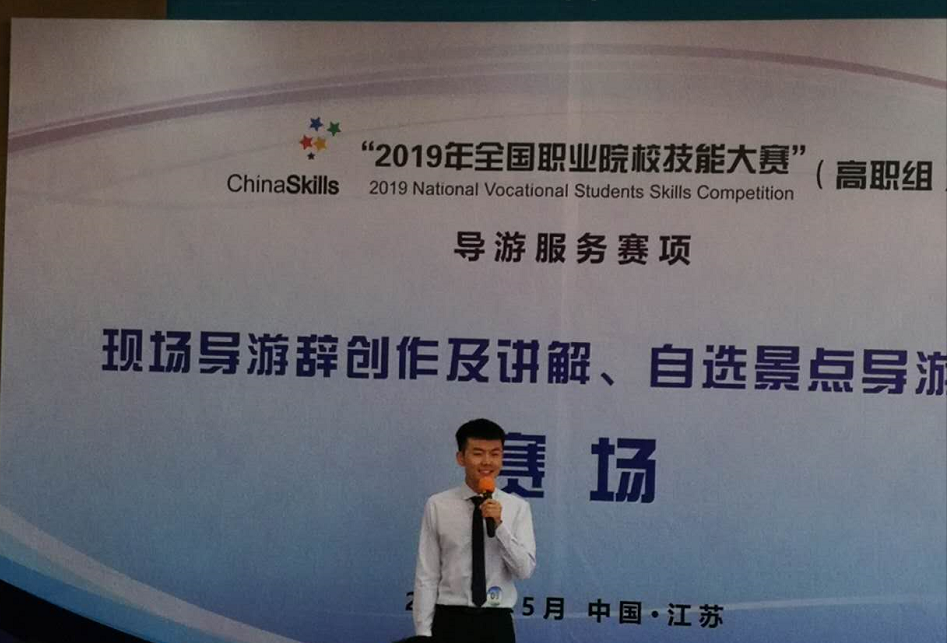 2019年5月29日至31日,为期三天的“2019年全国职业院校技能大赛高职组导游服务赛项”在南京旅游职业学院顺利落下帷幕。来自全国的144名参赛选手同台竞技、相互切磋,以完美的标准、精湛的技艺,为观众和评委呈献了一场多姿多彩的视听盛宴。祝贺我院选手韦志航同学获得了二等奖的好成绩。