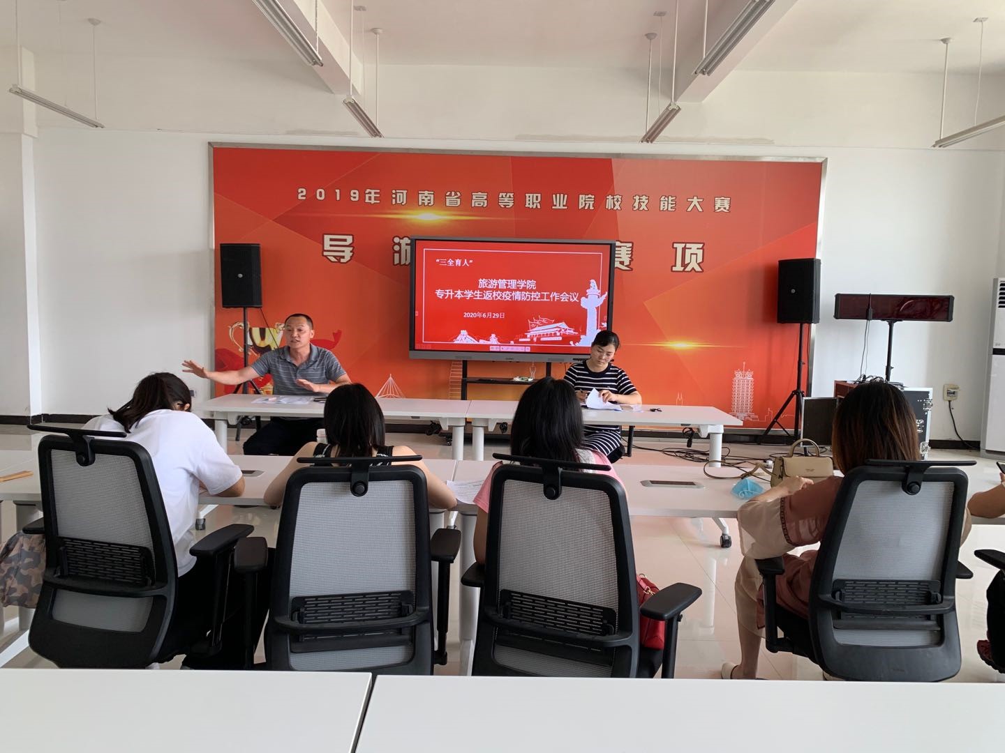 6月29日下午2:30,我院在5A403会议室召开2020年专升本学生返校疫情防控工作会议,党总支副书记张笃川,团总支书记金慧慧,全体辅导员参加会议。