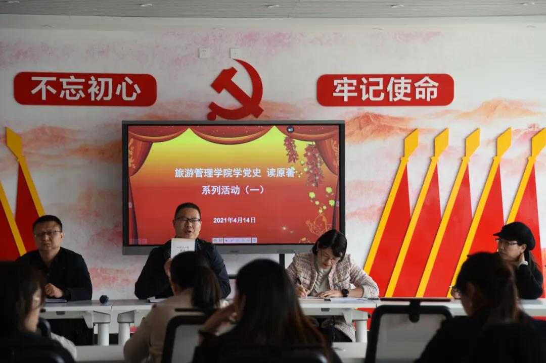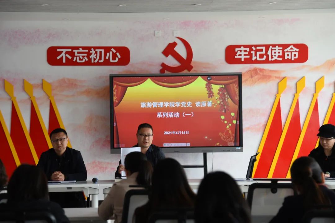 4月14日下午,旅游管理学院学党史读原著系列活动(一)在党史文化馆开展。学院党总支书记秦合岗,院长李俊,党总支副书记张楗让,副院长张东月同全院教职工一同参加此次活动。活动由秦合岗主持。