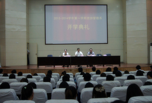9月1日,我系2012级学生开学典礼在西报告厅召开,系全体辅导员及班主任参加。开学典礼由系党总支书记肖靖主持,院长樊豫陇教授、旅管系主任胡华等领导出席。