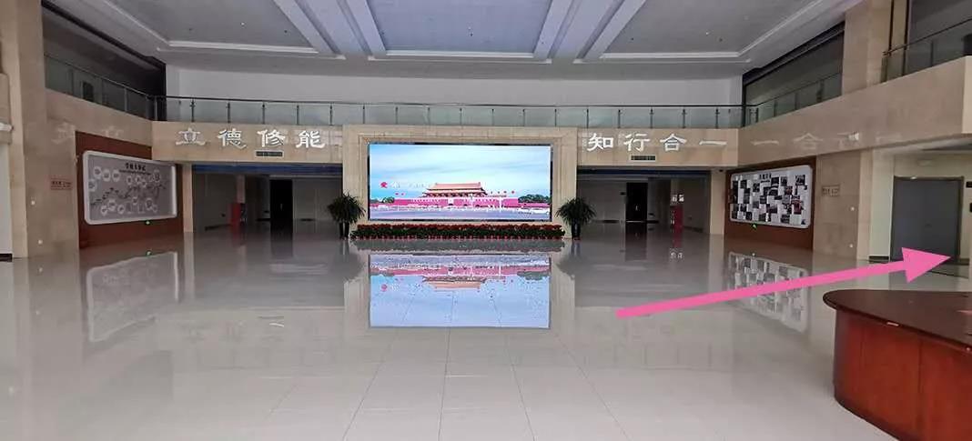 进入行政楼2楼大厅后,箭头所指即校园网络运维中心的位置。